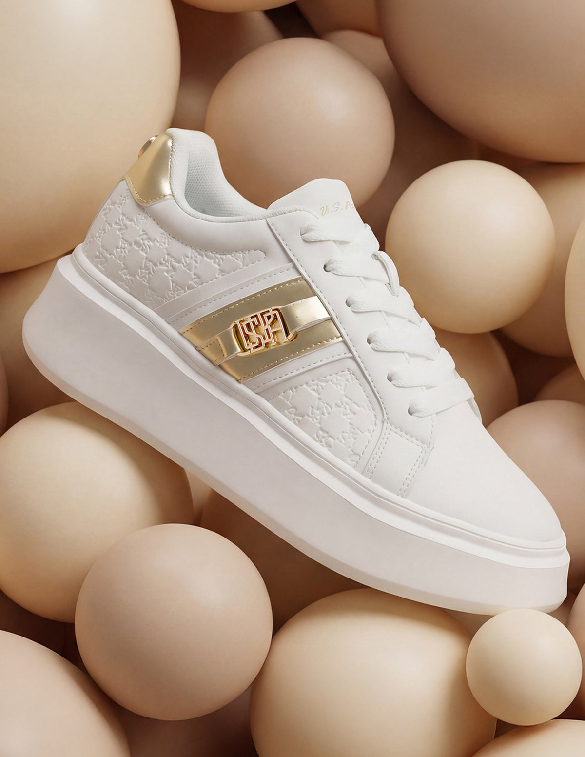 - Brand embossed pattern with gold metallic logo