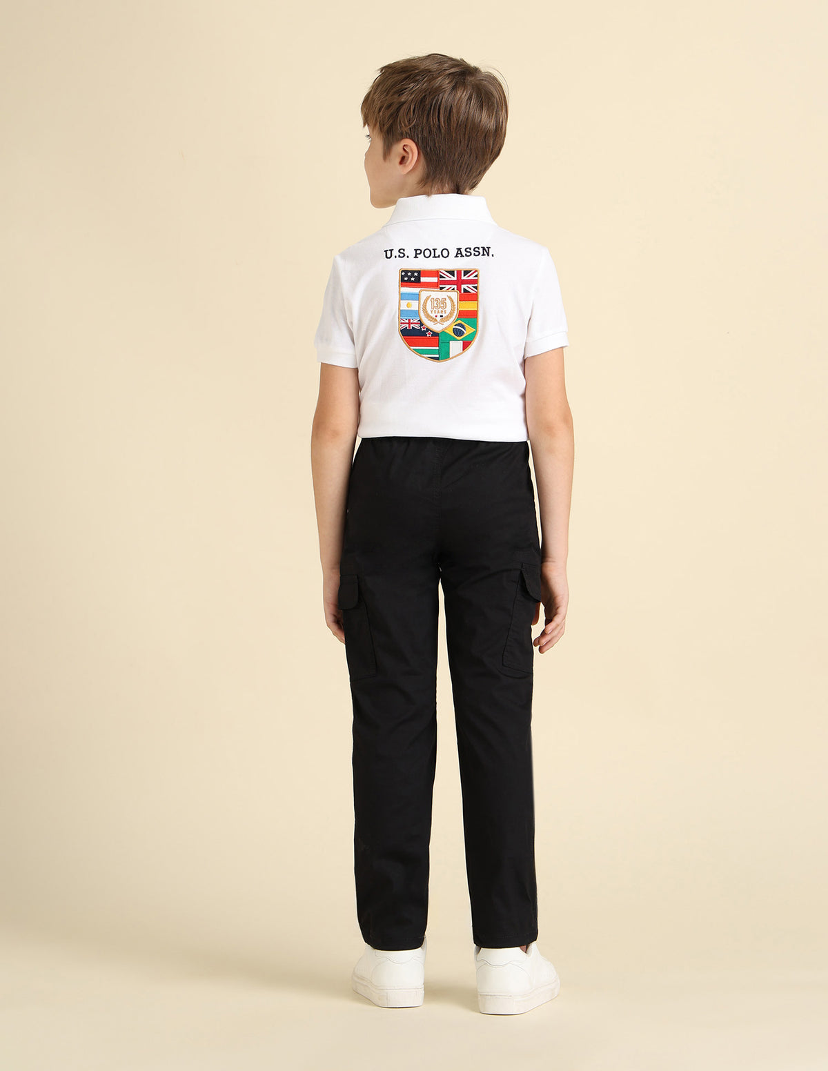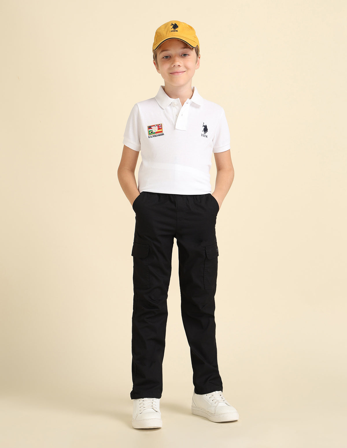 Story: Boys' solid trousers for casual comfort. Perfect for everyday wear, these versatile pants offer style and ease for active kids.