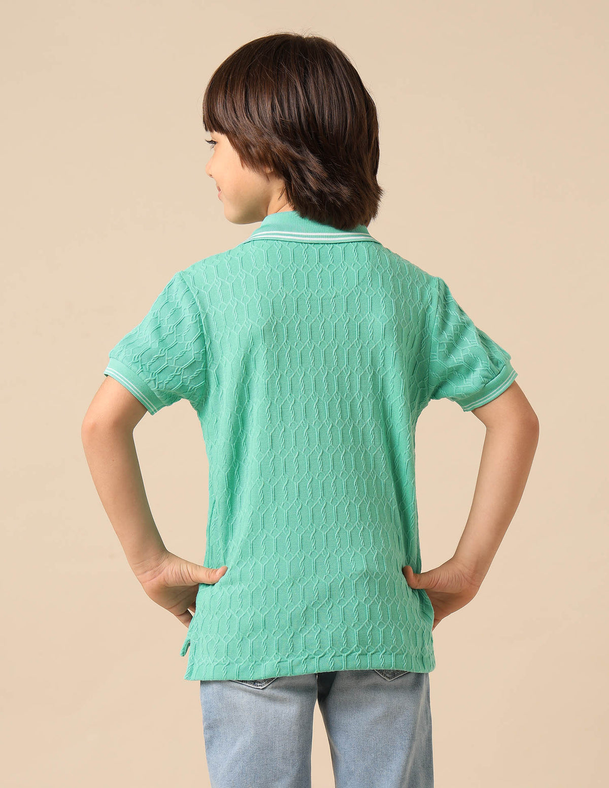 Boys Textured Pure Cotton Polo Shirt