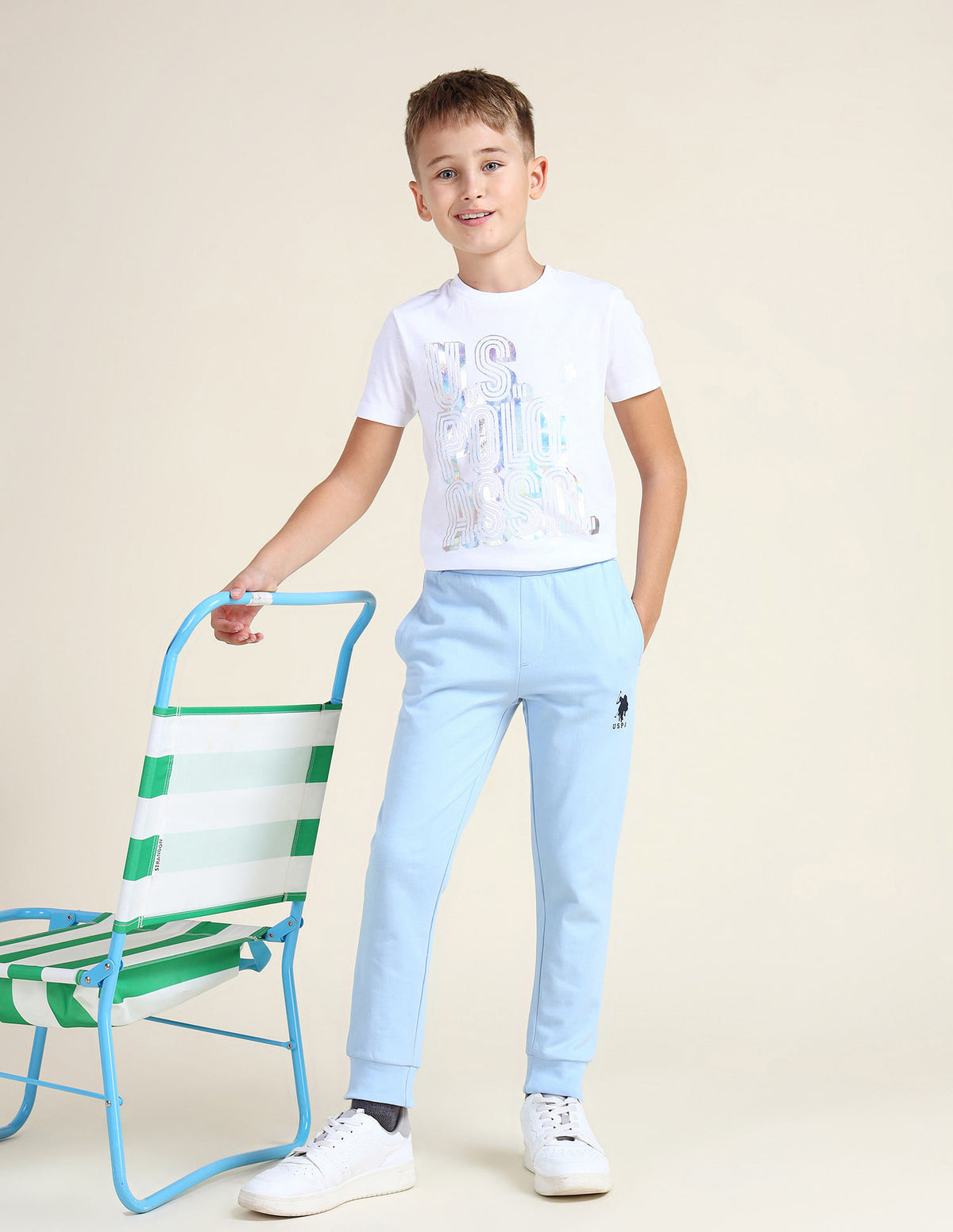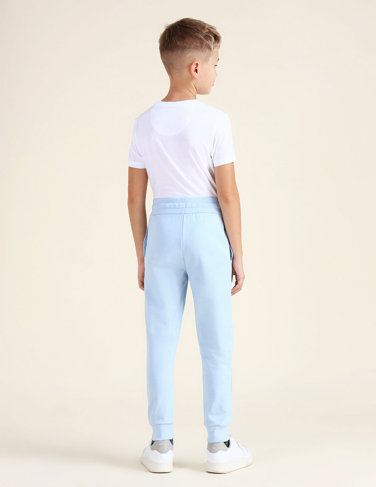 | Mid-rise | Elasticized drawstring waistband | Logo at front | Two side pockets | Ribbed ankle hems | Colourblocked pattern | Knitted | Regular fit |
