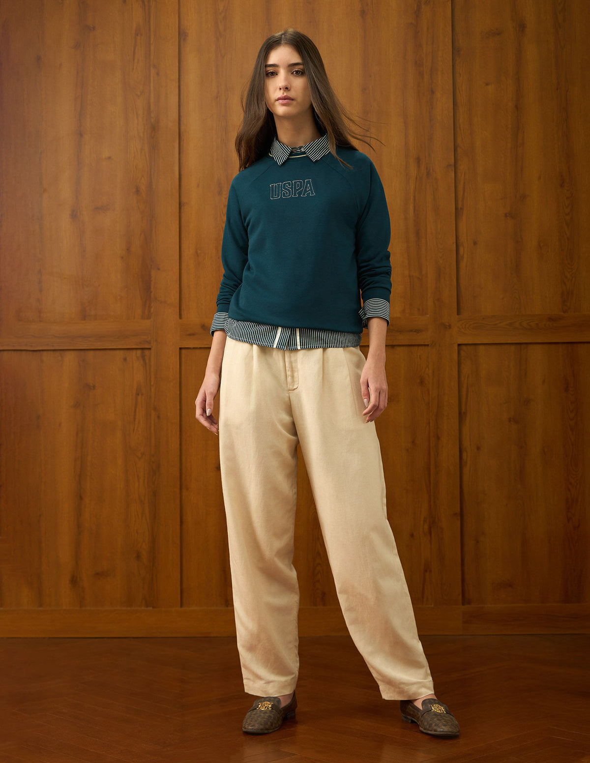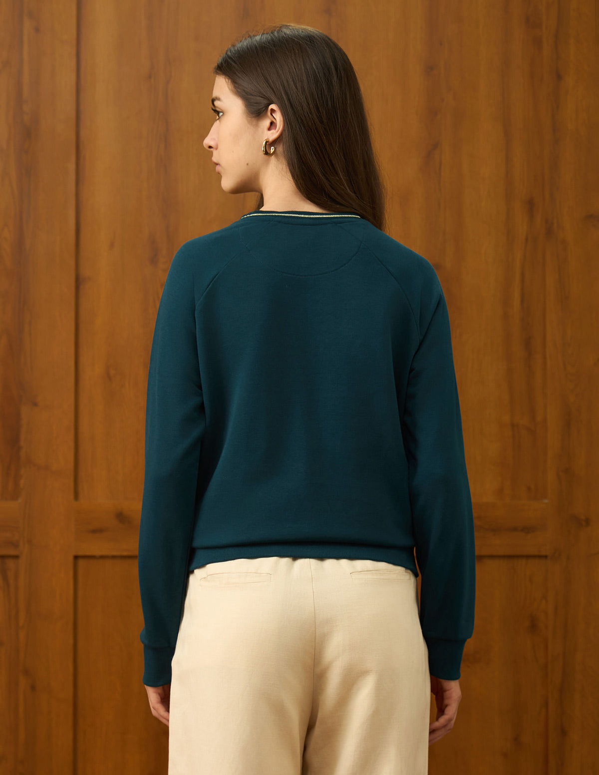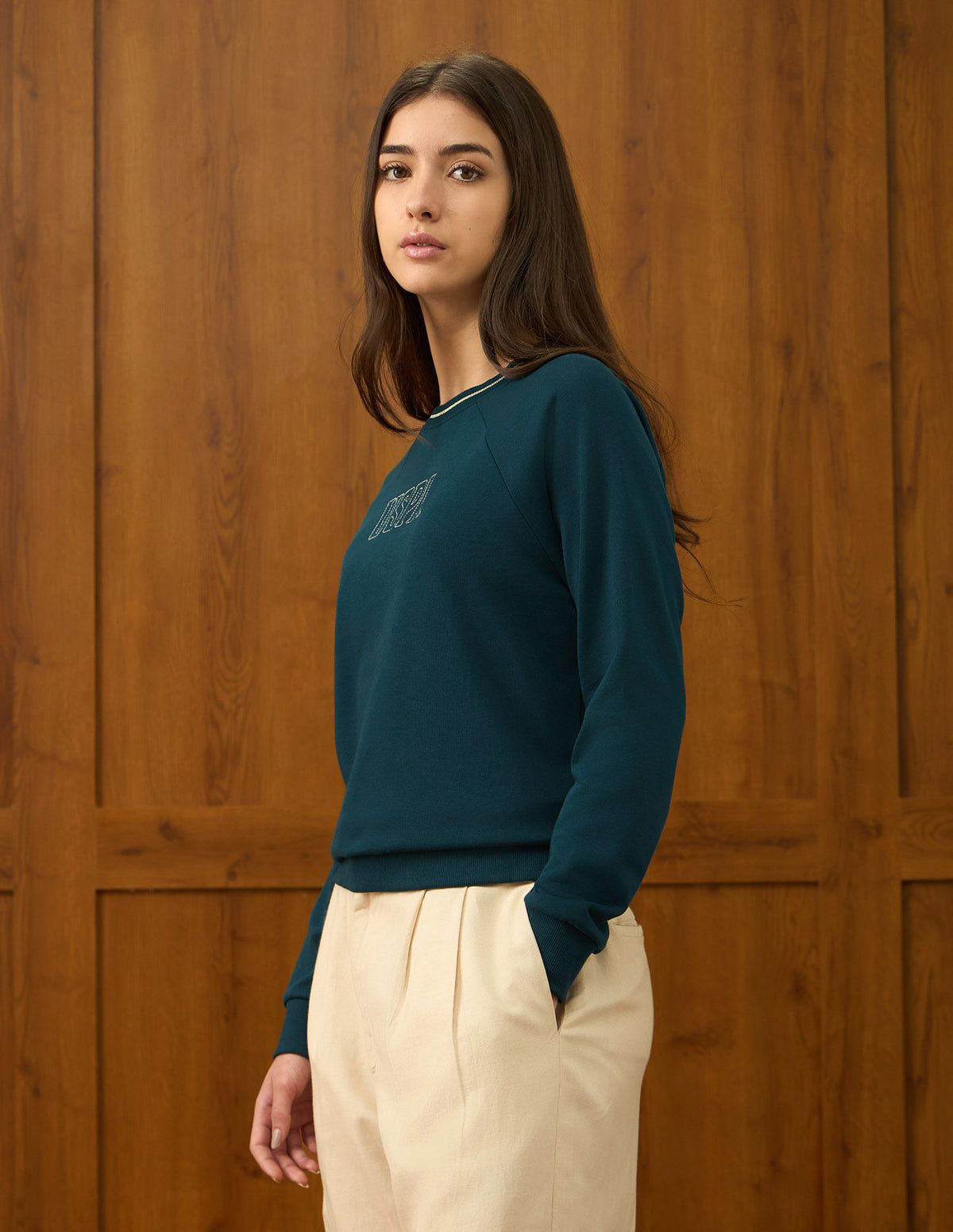 | Crew neck | Long sleeves | Ribbed sleeve hems and hemline | Brand printed pattern | Knitted | Raglan fit |