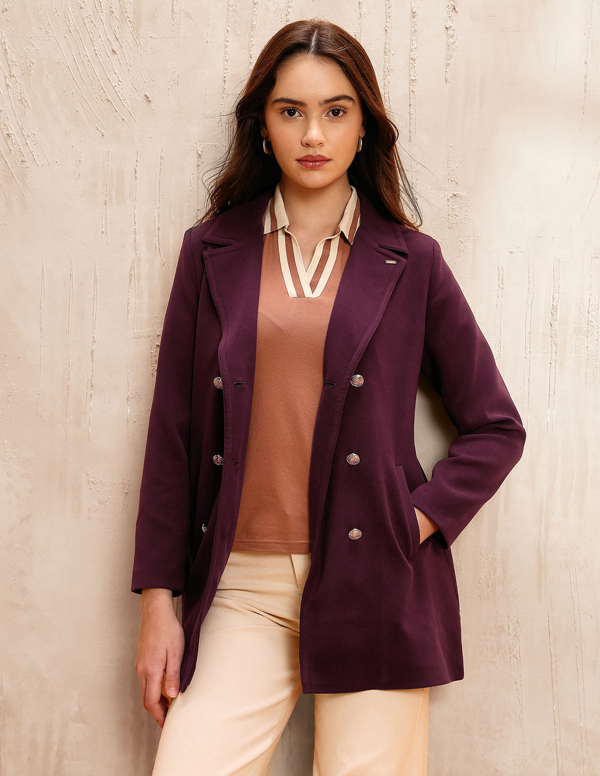 | Notch lapel collar | Double breasted | Long sleeves | Straight hem | Solid pattern | Regular fit |