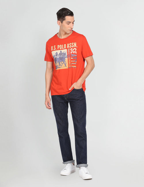 Men Red Crew Neck Graphic Print T-Shirt