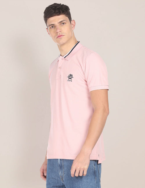Men Pink Cotton Solid Polo Shirt