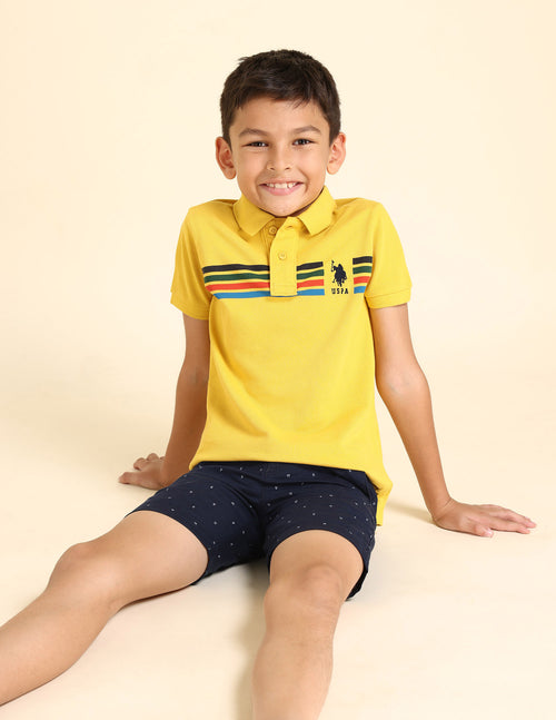 Boys Horizontal Striped Regular Fit Polo T shirt