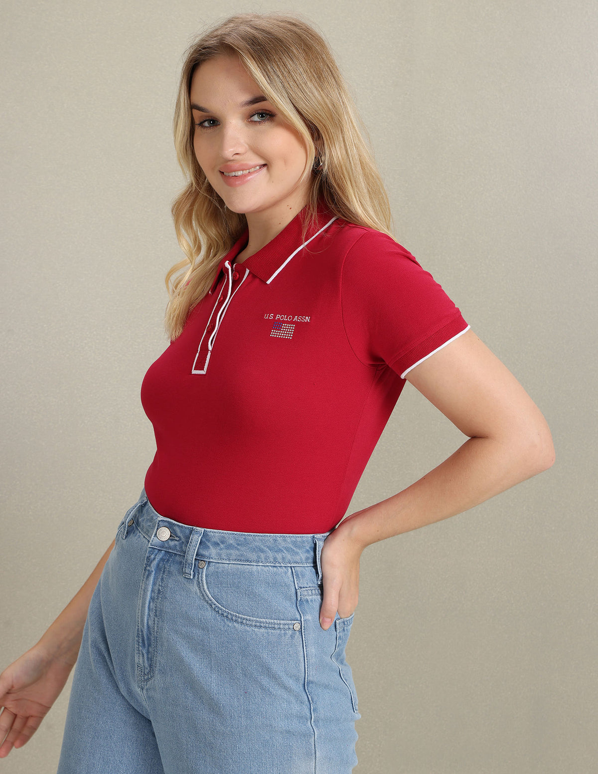 Story: Add subtle style to your classic outfit with this tee that comes with a polo collar and an embroidered logo at the chest