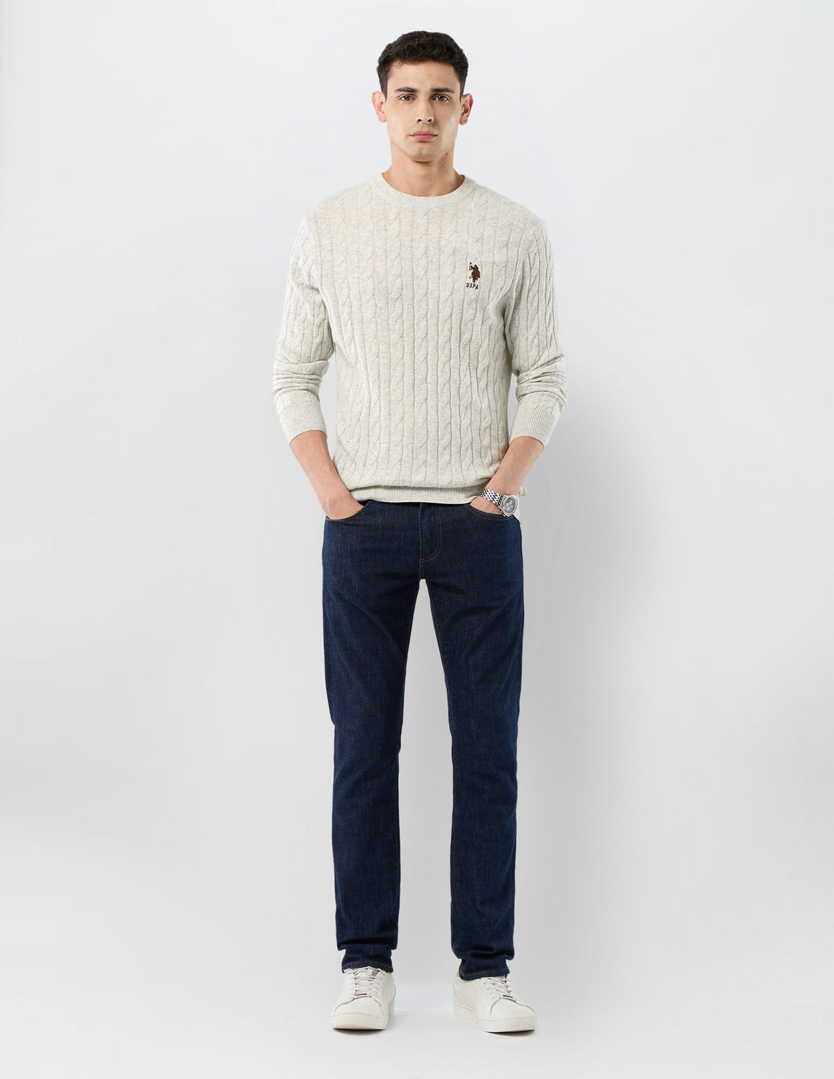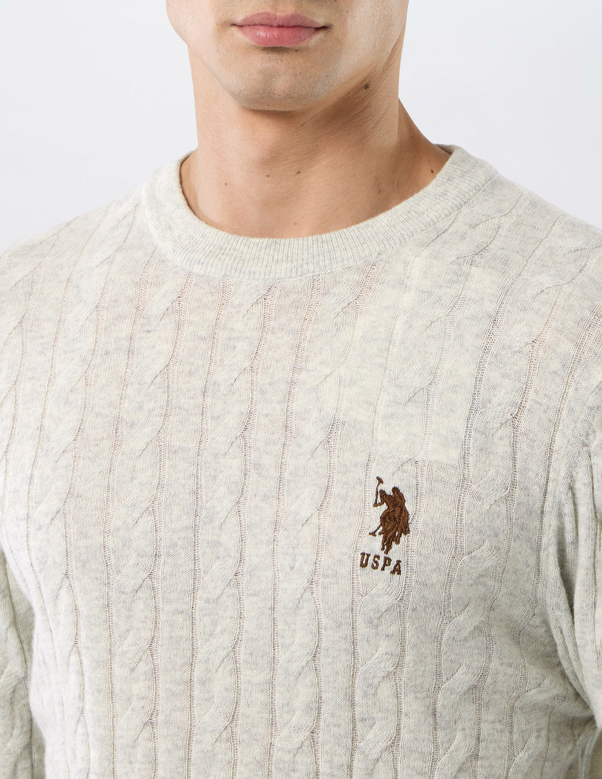 Story: This men's cable-knit sweater from the 135Th collection blends textured craftsmanship with casual elegance, ideal for relaxed yet refined everyday wear.