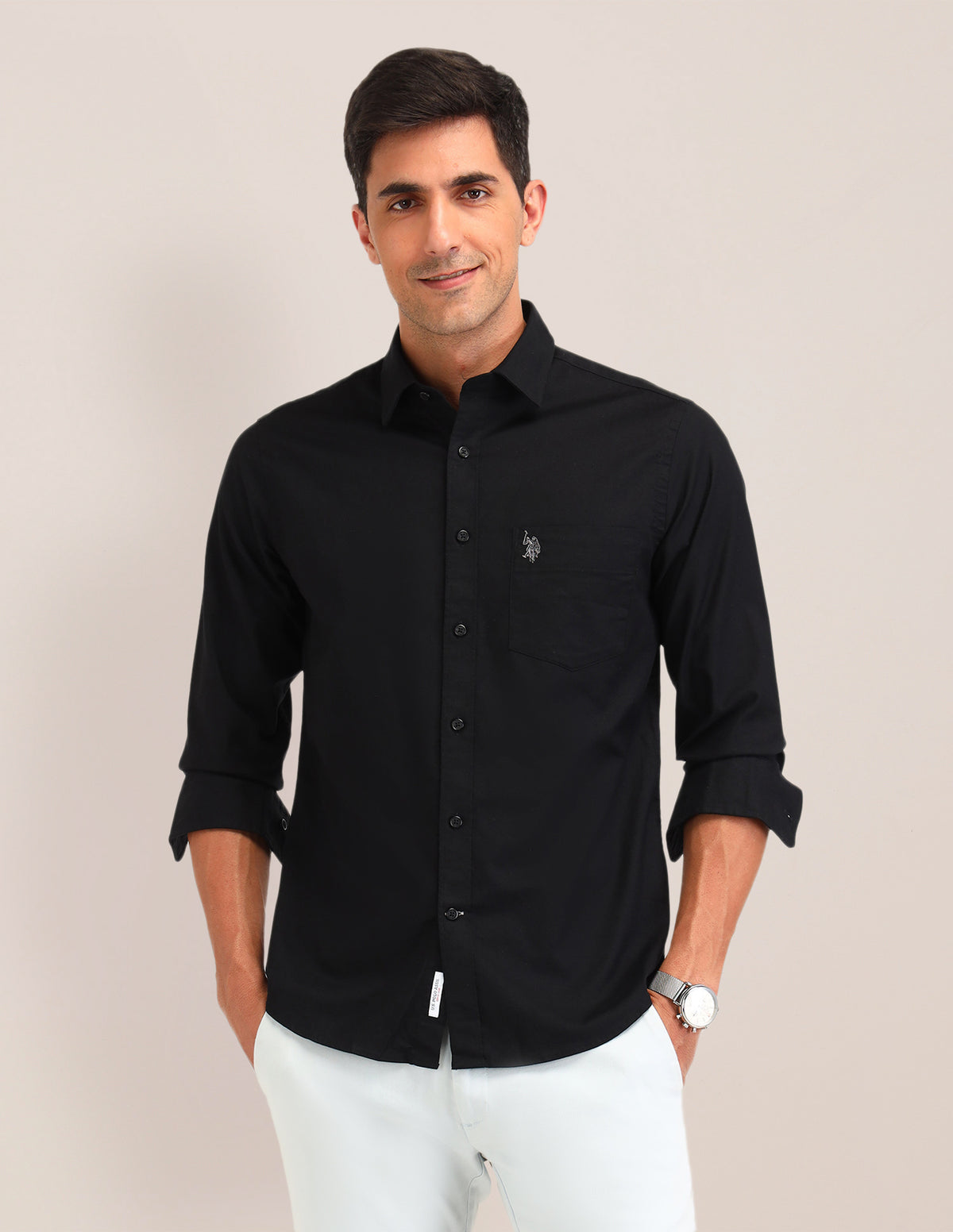 Story: Aw24 oe q2 us solid style in this men's casual shirt. Simple, versatile design for laid-back days.