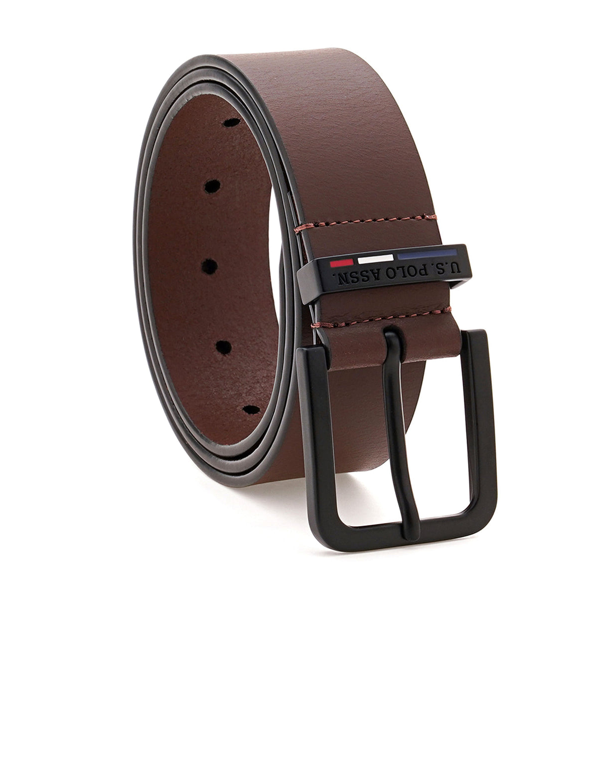 Story: Crafted from leather, this belt features a luxe vibe with a monogrammed buckle for signature styling.