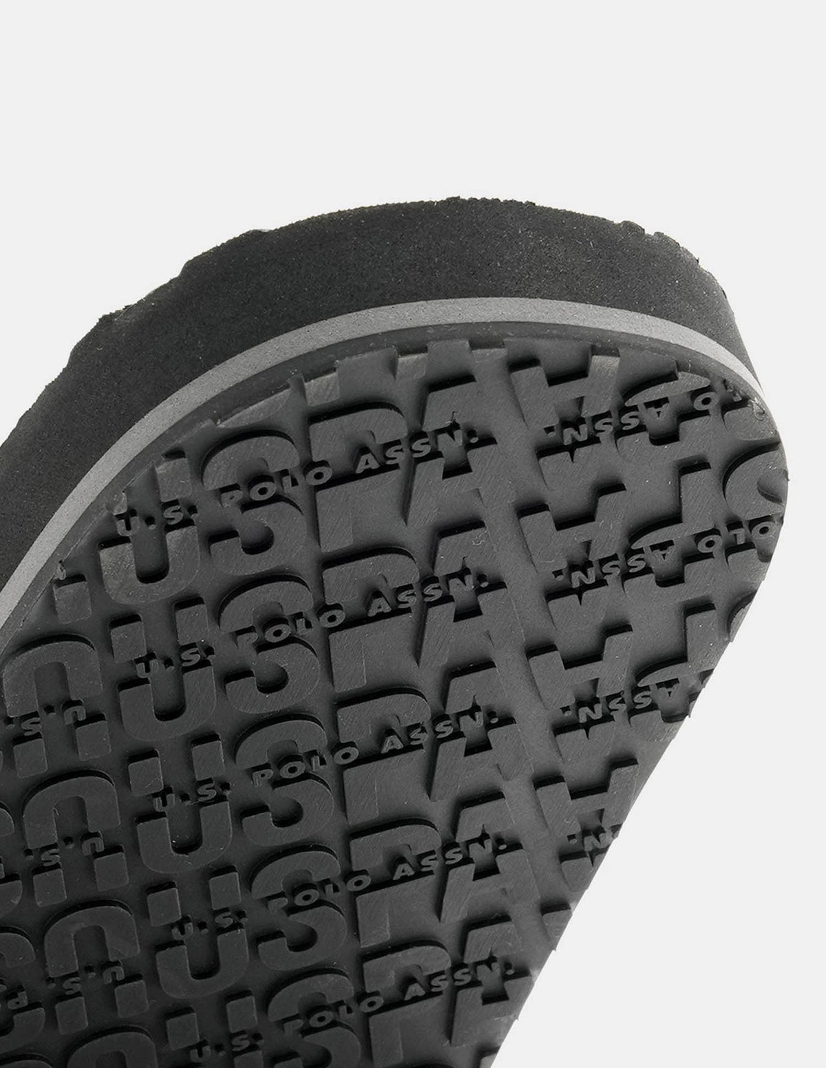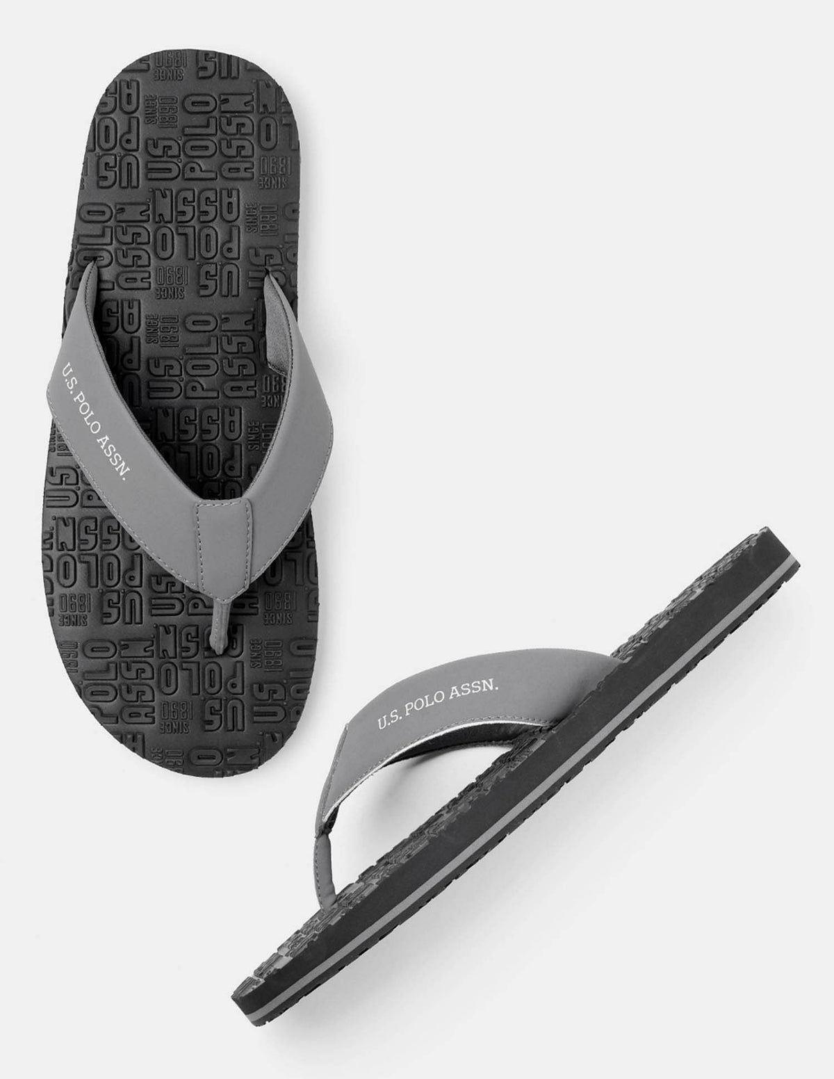 | Broad V-strap with branding | Cushioned footbed | Textured outsole | Brand printed pattern |