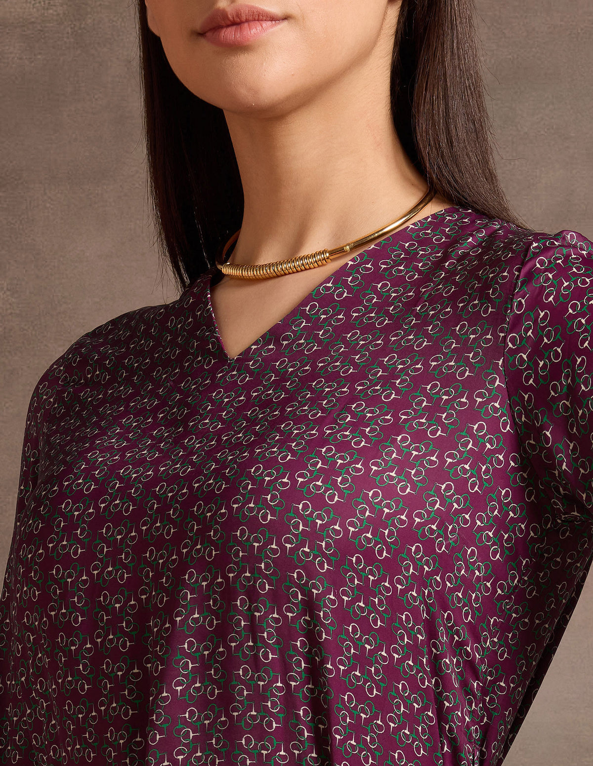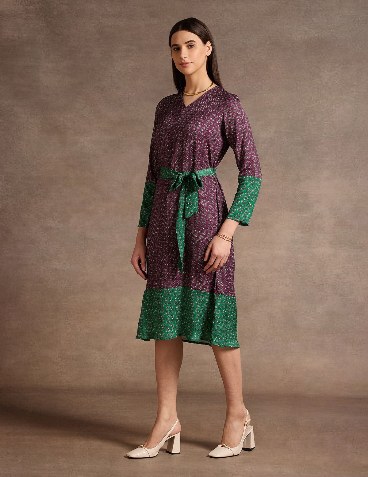 | V-neck | Long sleeves | Tie-up at waist | Wrap around | All-over printed pattern | Woven | Regular fit