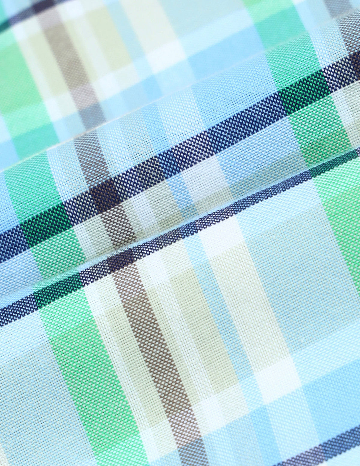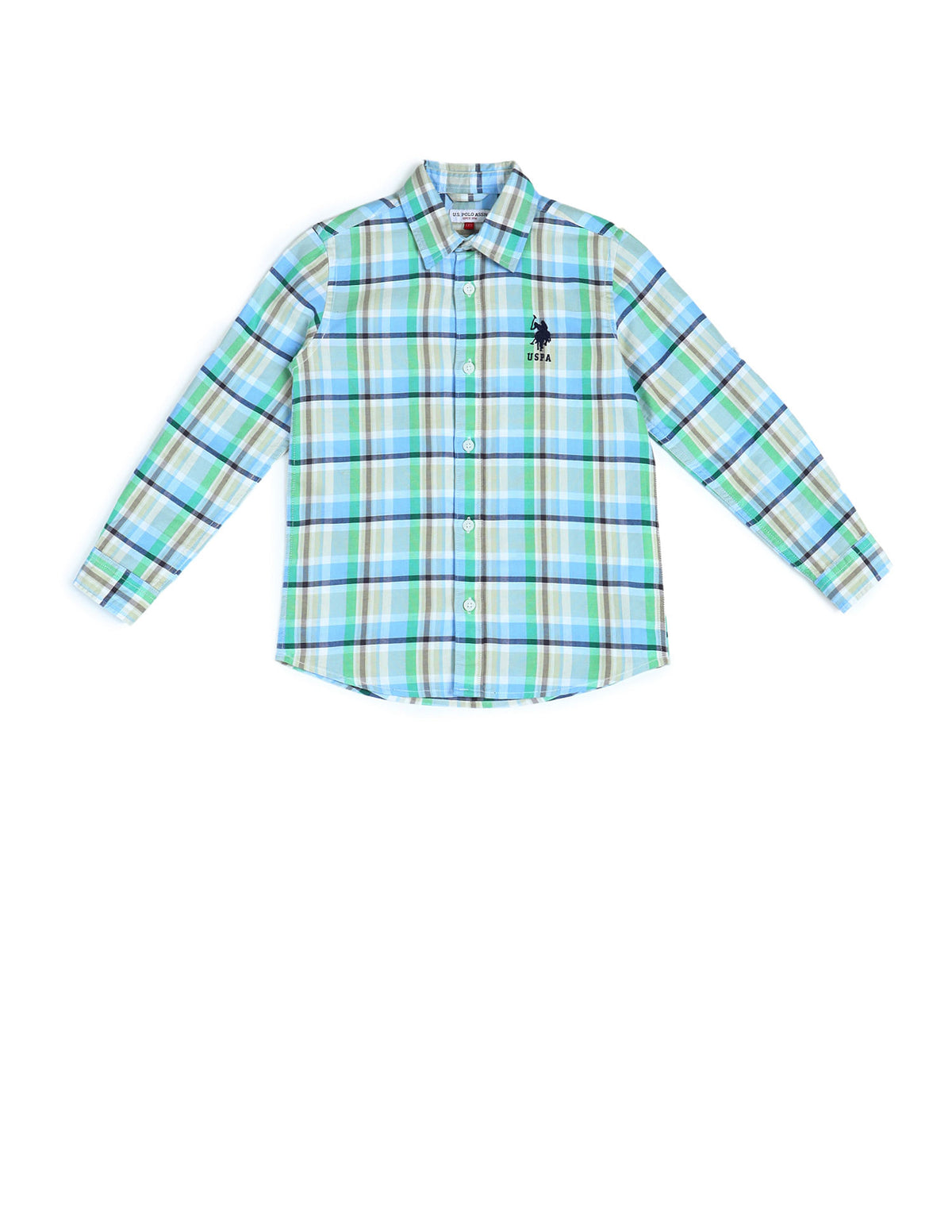 | Spread collar | Logo at chest | Full button placket | Long sleeves with rounded cuffs | Curved hemline | Tartan checked pattern | Dobby weave | Regular fit |