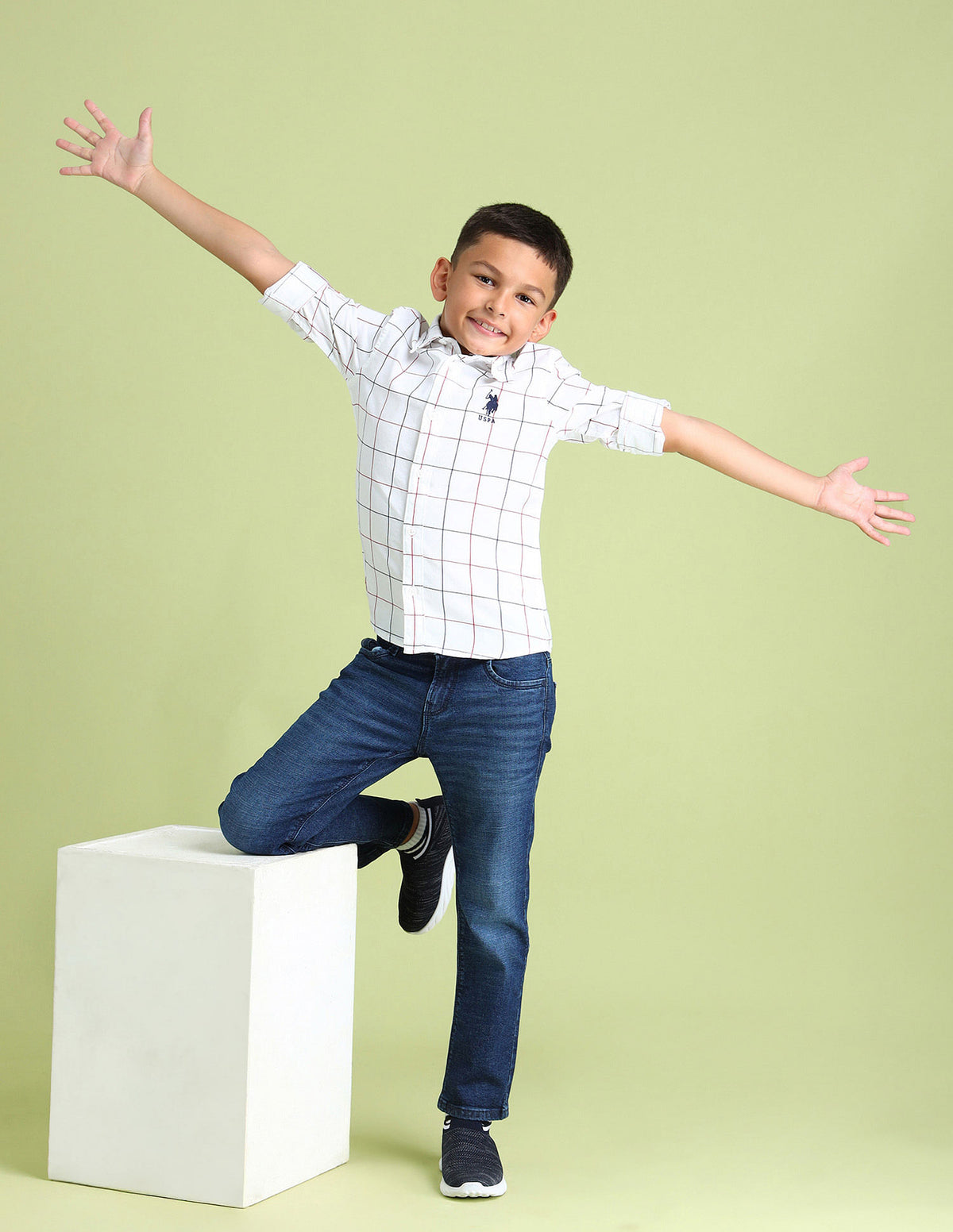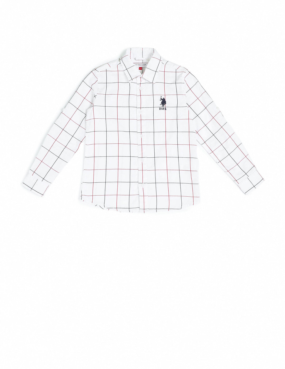 | Spread collar | Logo at chest | Full button placket | Long sleeves with rounded cuffs | Curved hemline | Tartan checked pattern | Dobby weave | Regular fit |