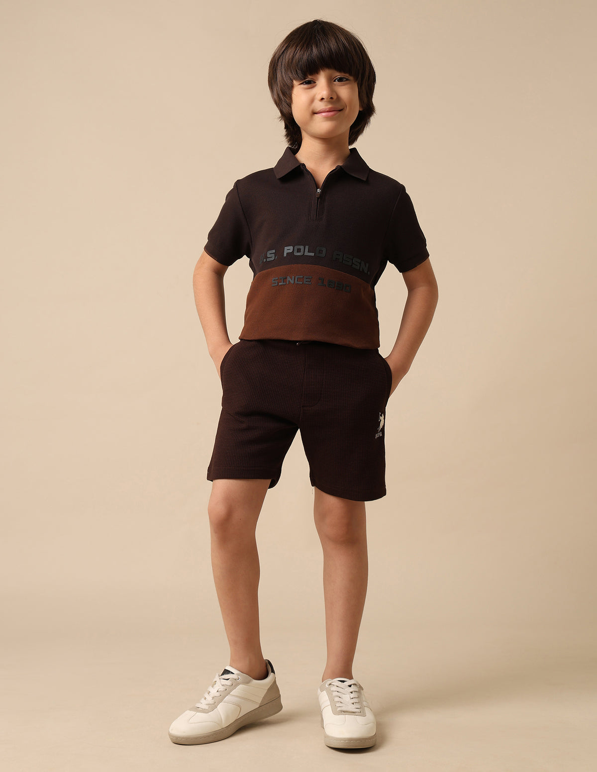 Boys Colour Blocked Brand Embossed Polo Shirt