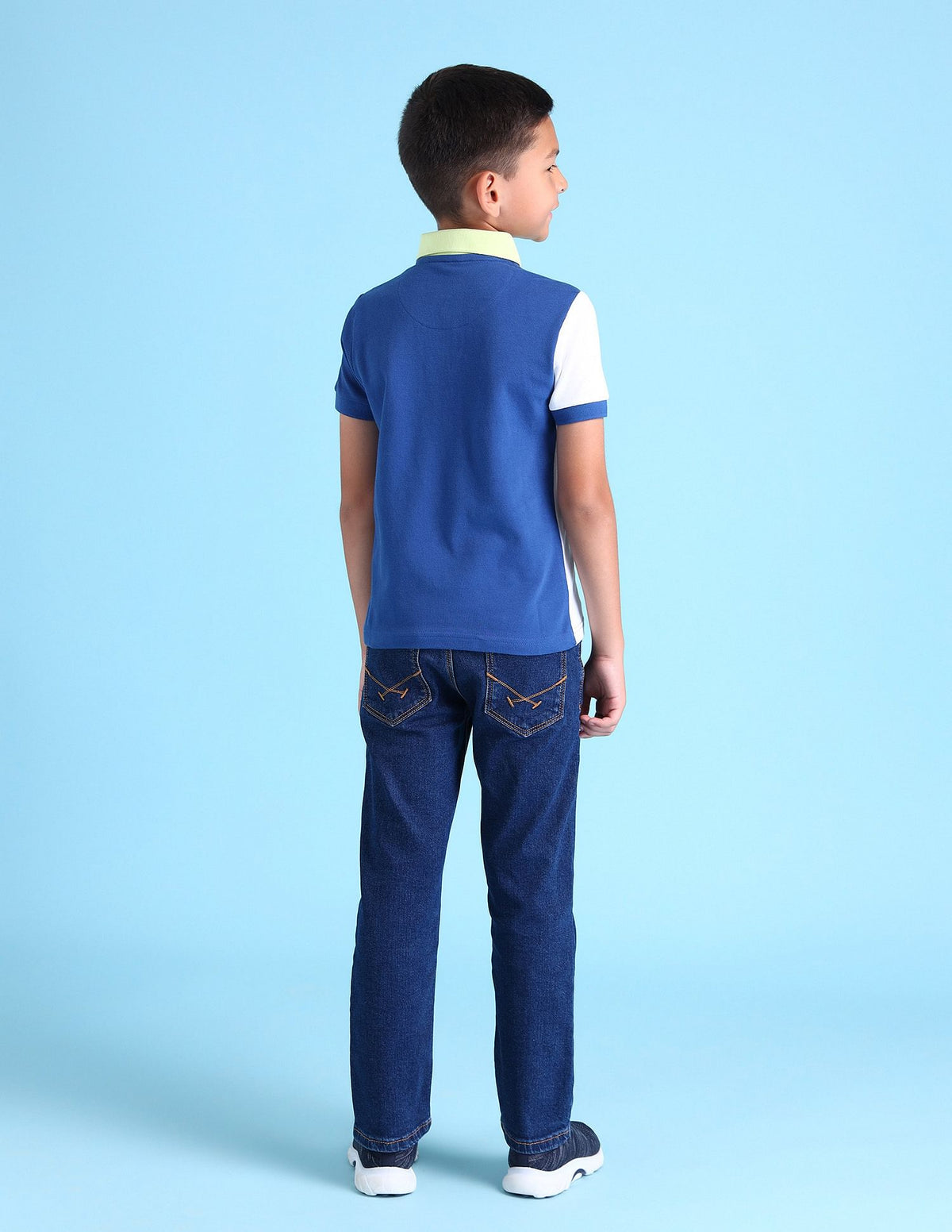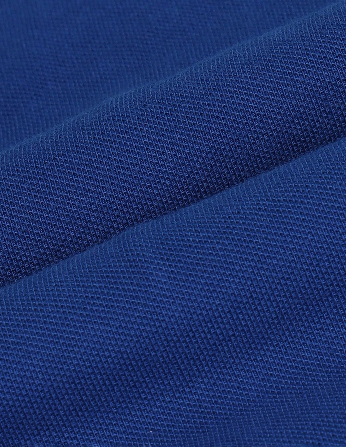 | Polo collar | Short button placket | Short sleeves | Ribbed collar and sleeve hems | Uneven vented hem | Colourblocked pattern | Regular fit |