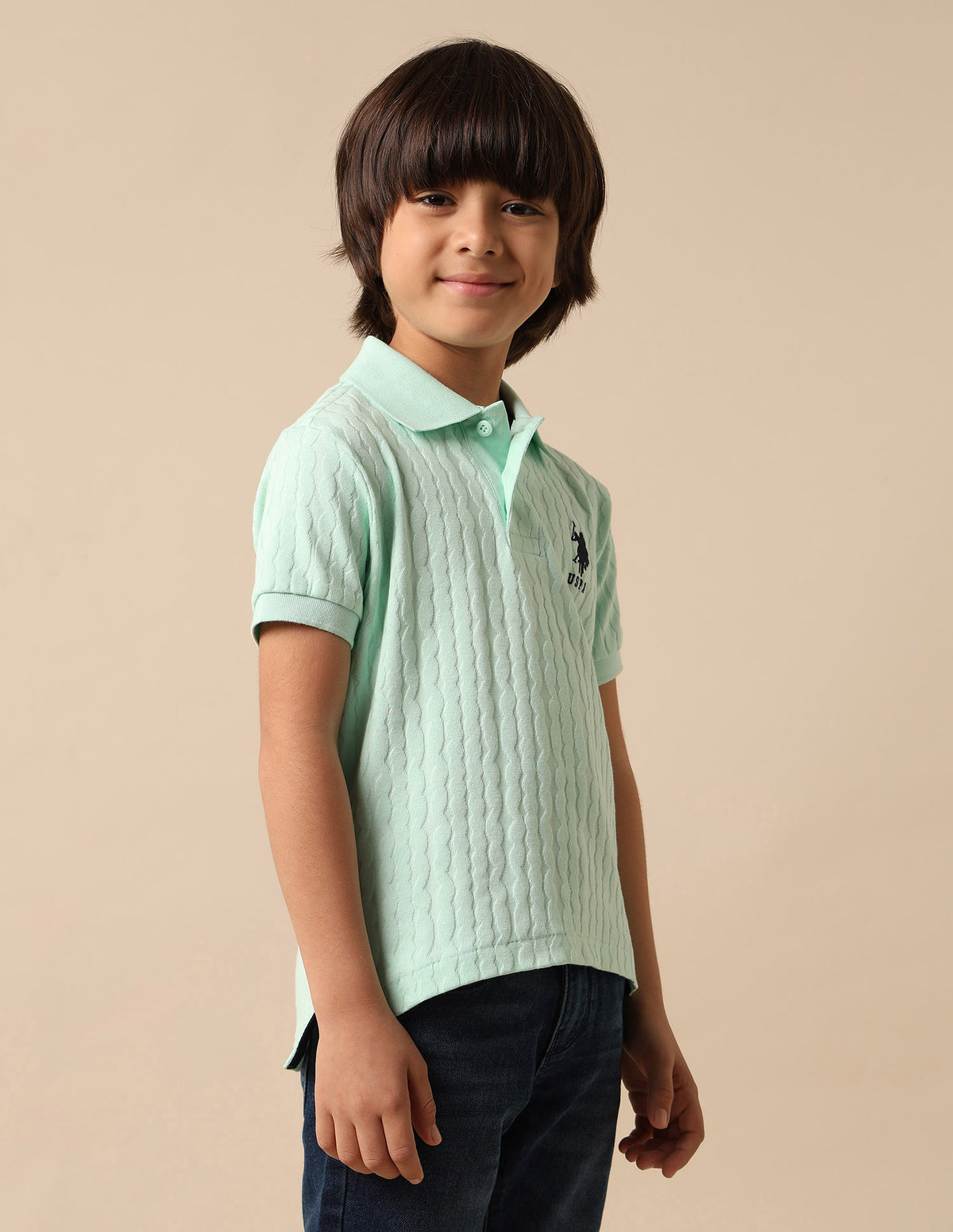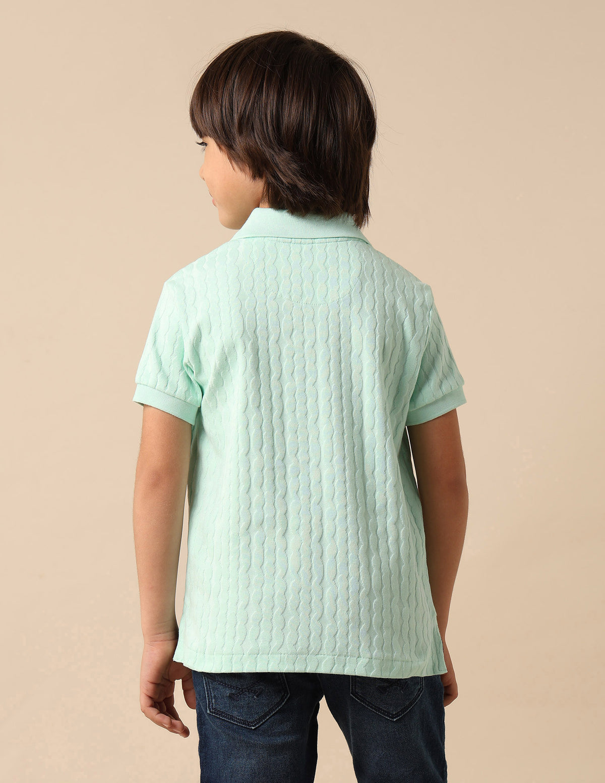 Story: Boys' textured casual T-shirt offers comfort and subtle style for everyday wear.