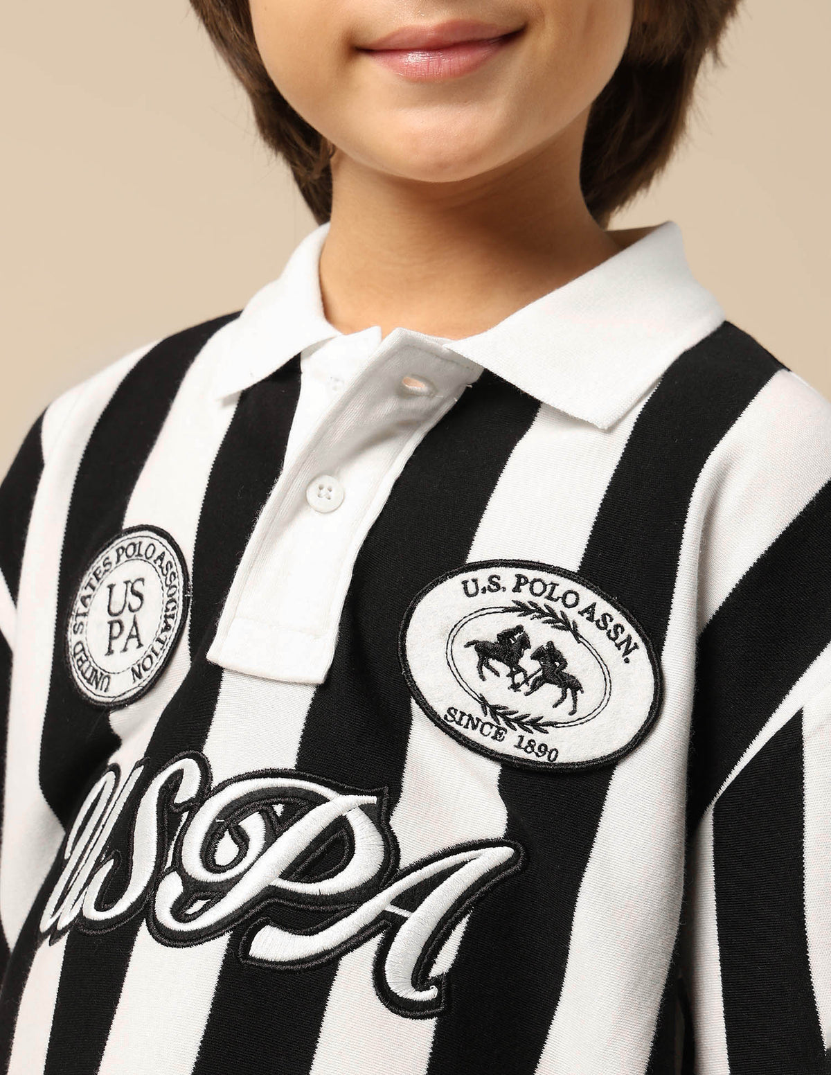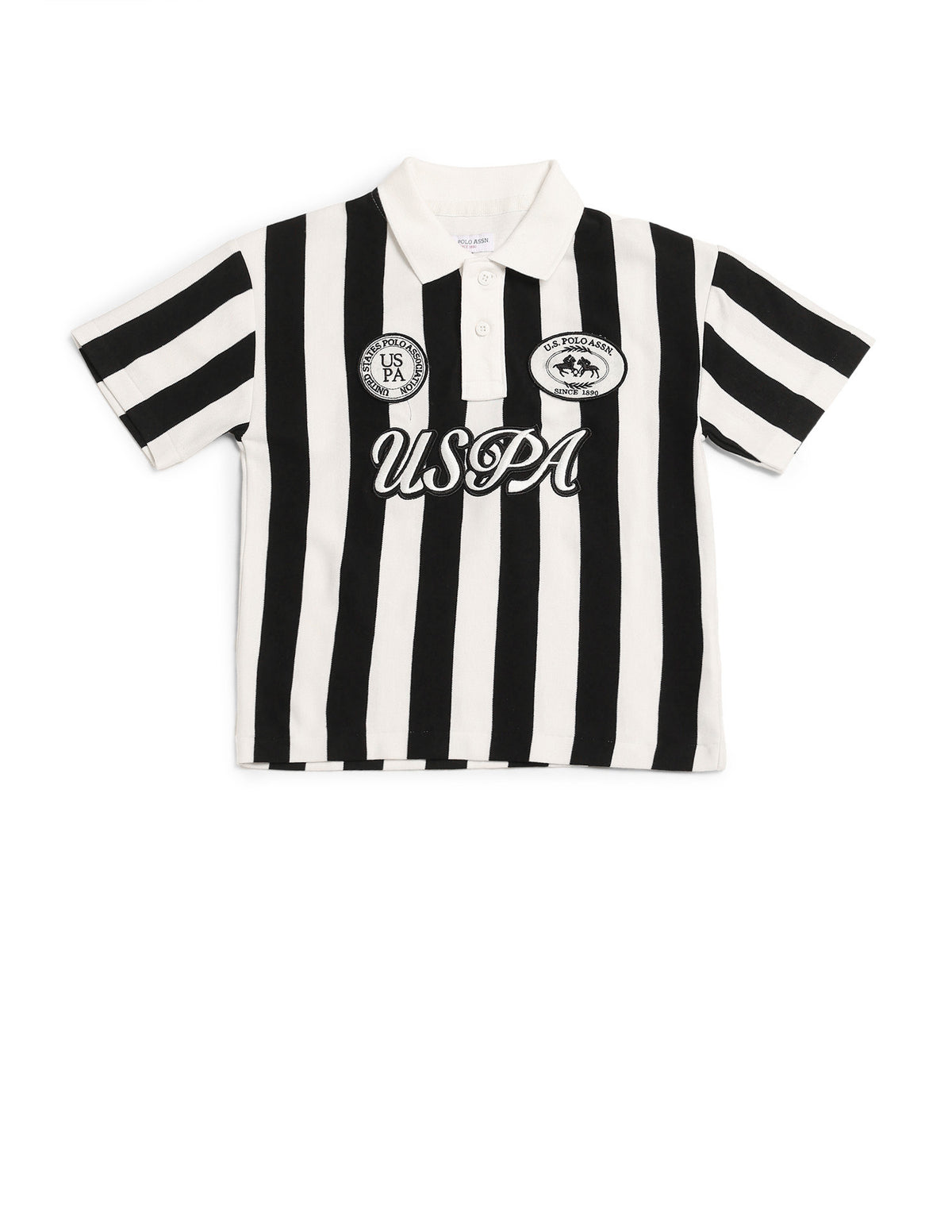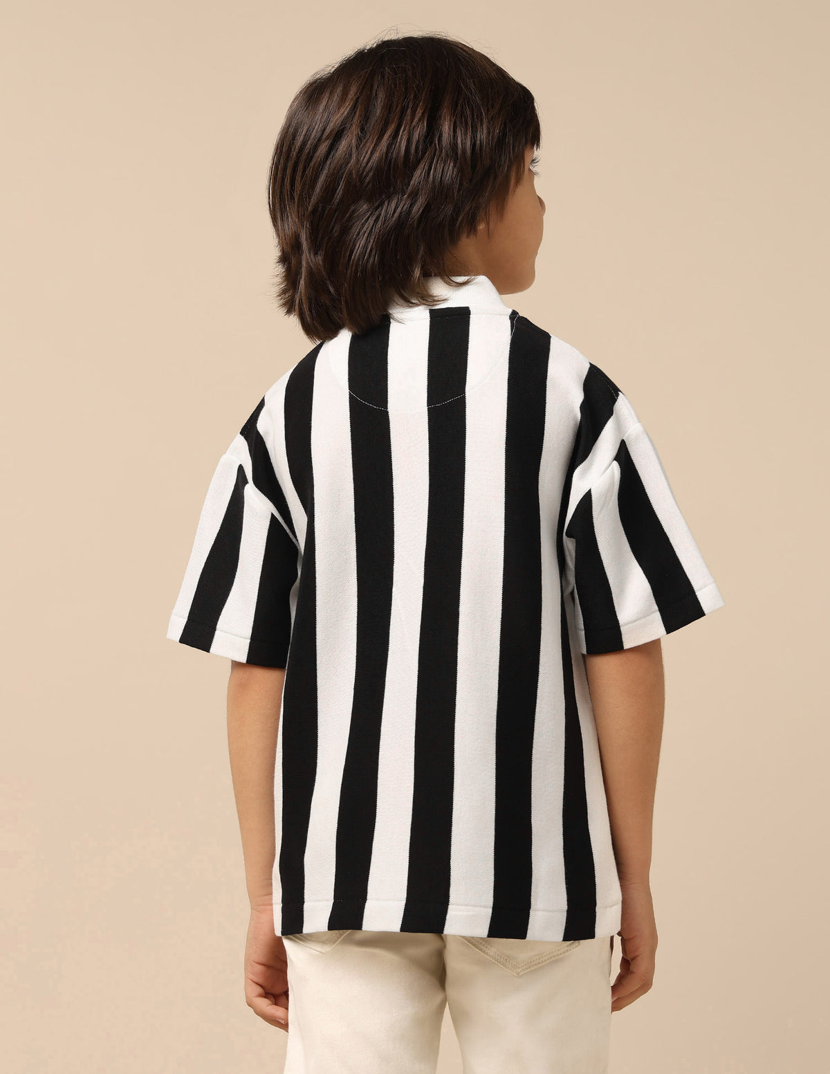 Boys Vertical Striped Boxy Fit Polo Shirt