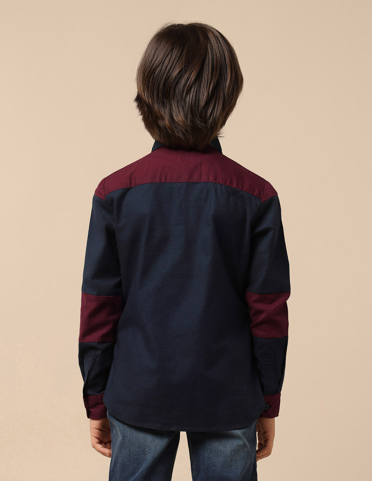 Story: Boys' color-block casual shirt adds a trendy, fun element to his everyday wardrobe.