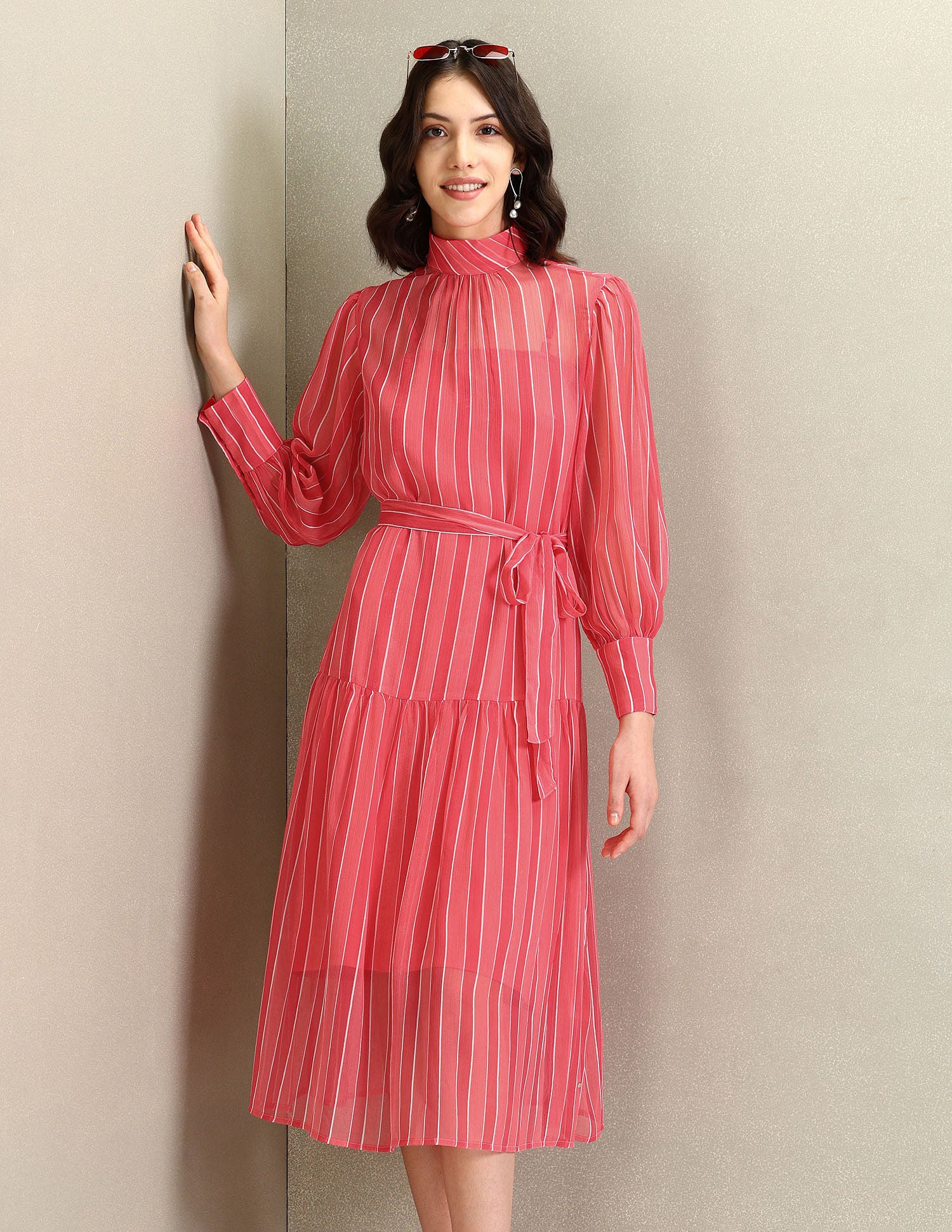 High Neck Vertical Stripe Dress