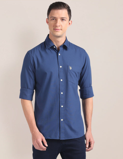 Men Aqua Solid Twill Weave Casual Shirt
