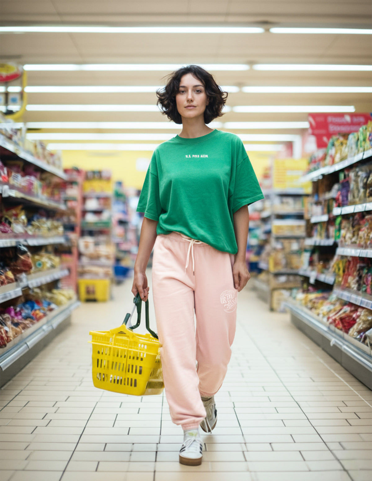 | Mid-rise waist | Drawstring closure | Two pockets | Flat front | Solid pattern | Jogger fit |