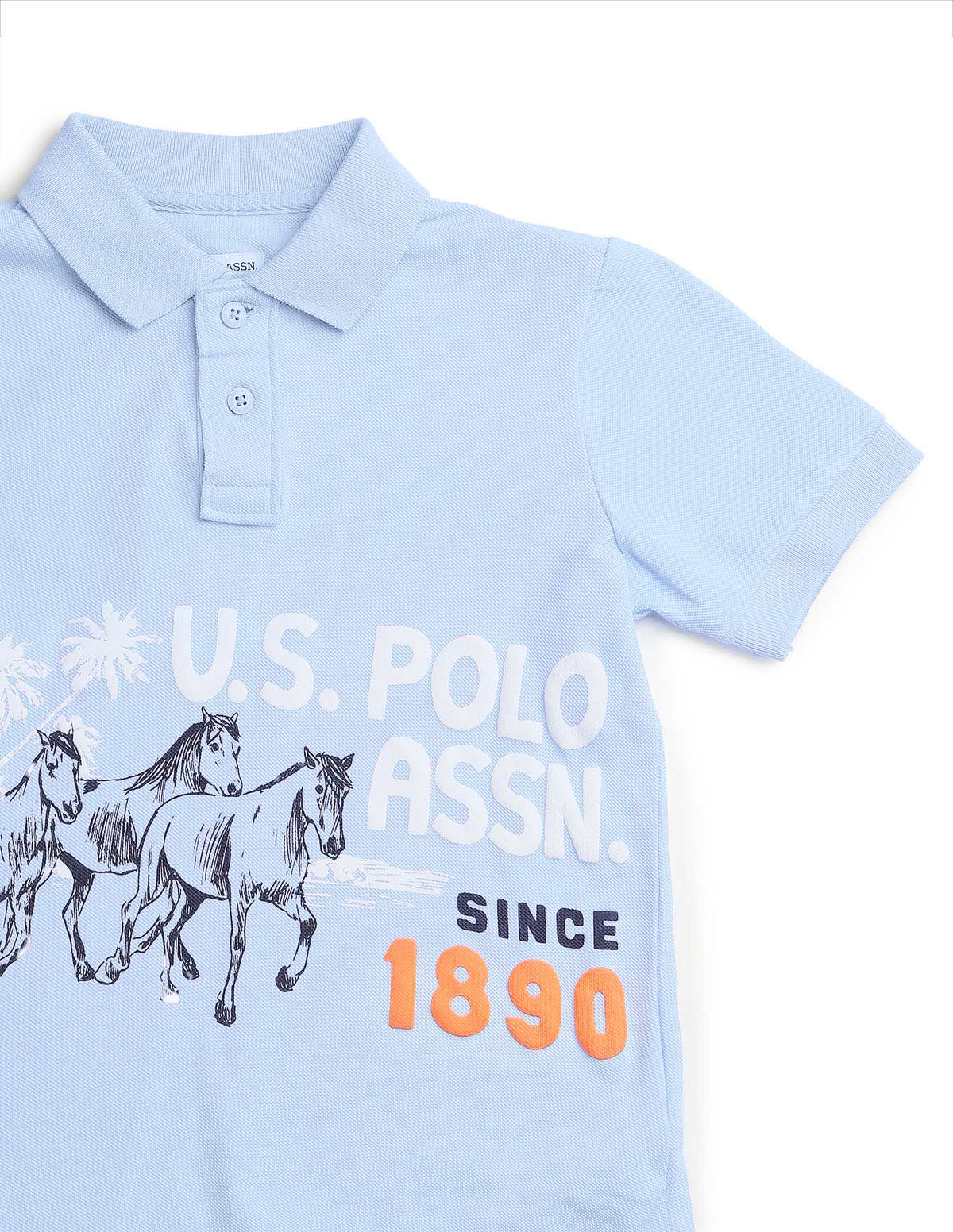 Boys Graphic Brand Printed Regular Fit Polo Shirt