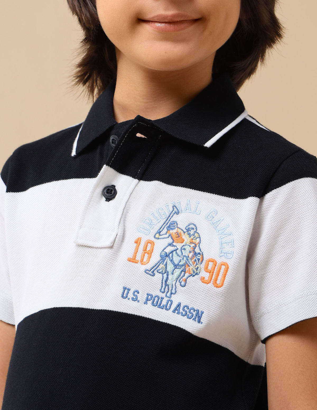 Boys Horizontal Striped Regular Fit Polo Shirt