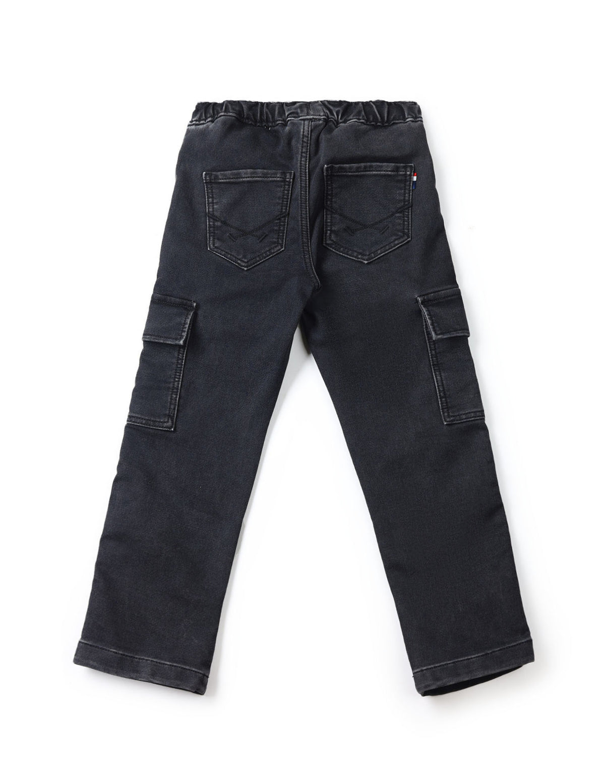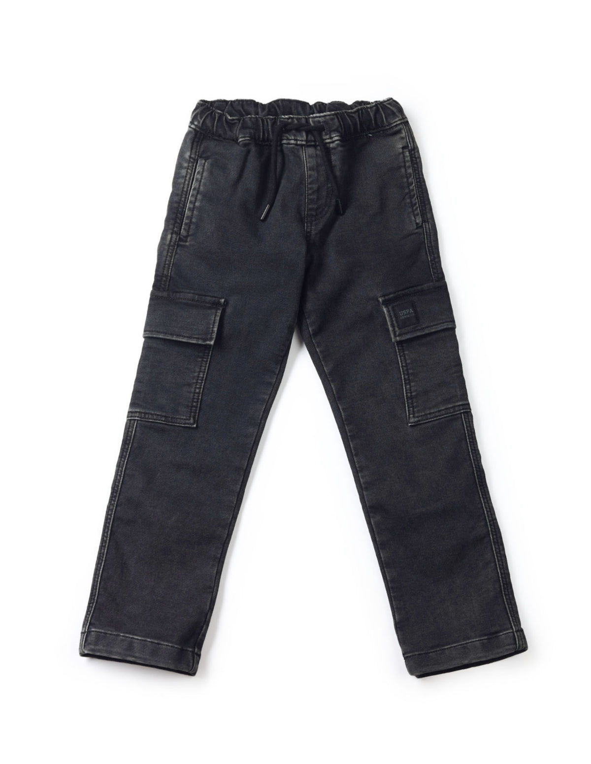 Story: Boys' solid jeans with pull-on design and cargo pockets offer convenience and style for casual outings.