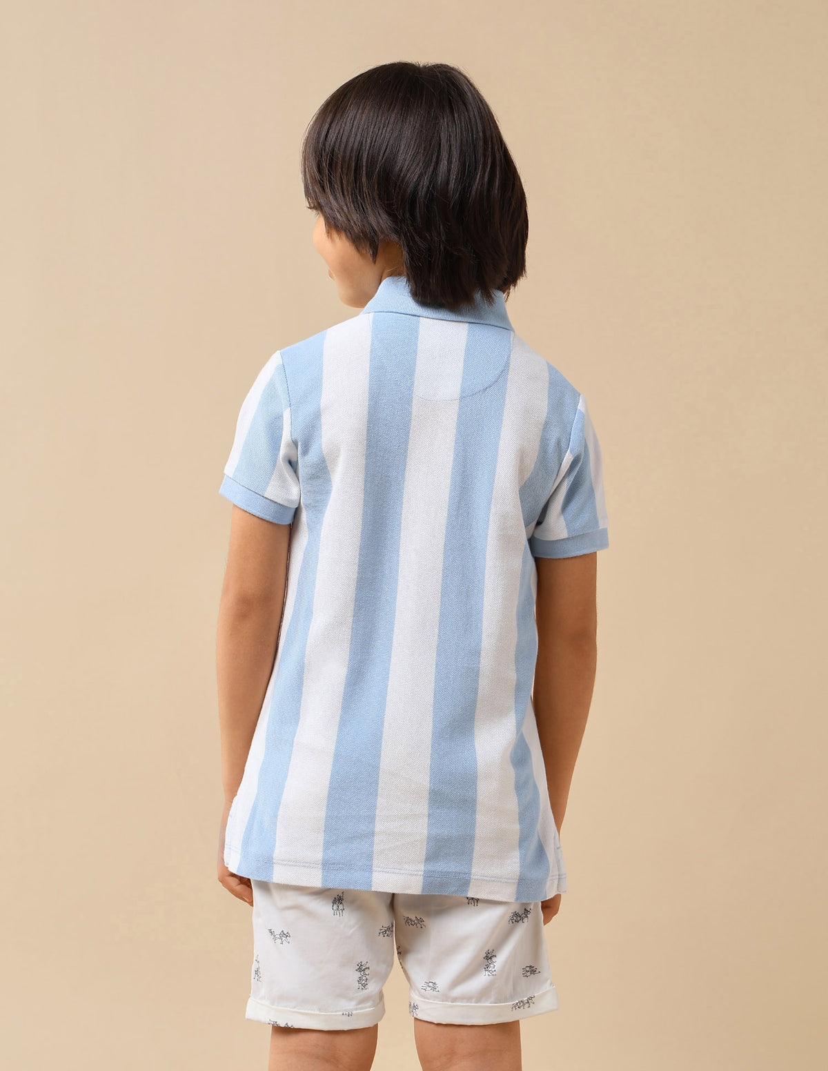 Boys Vertical Striped Regular Fit Polo Shirt