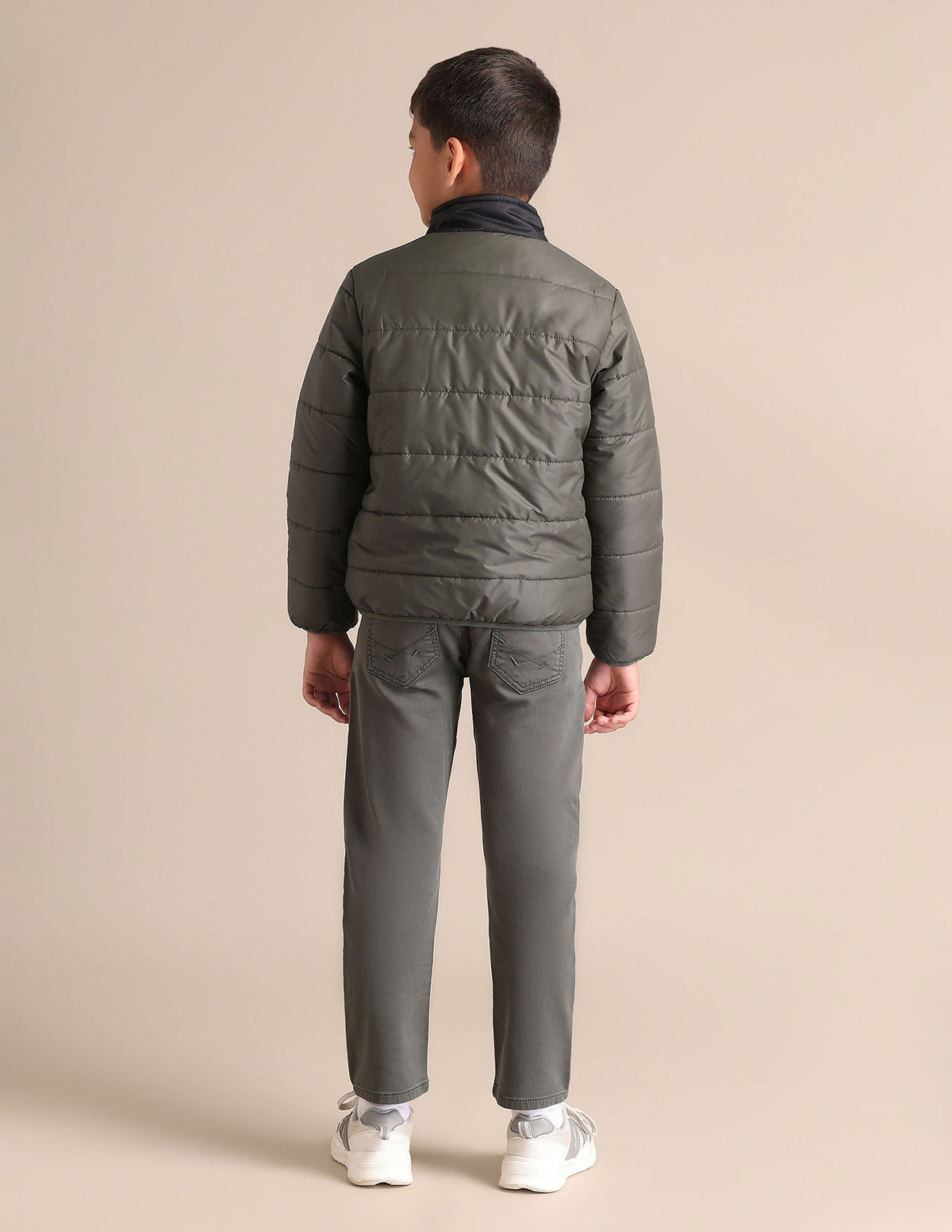 Boys Solid Stand Collar Jacket