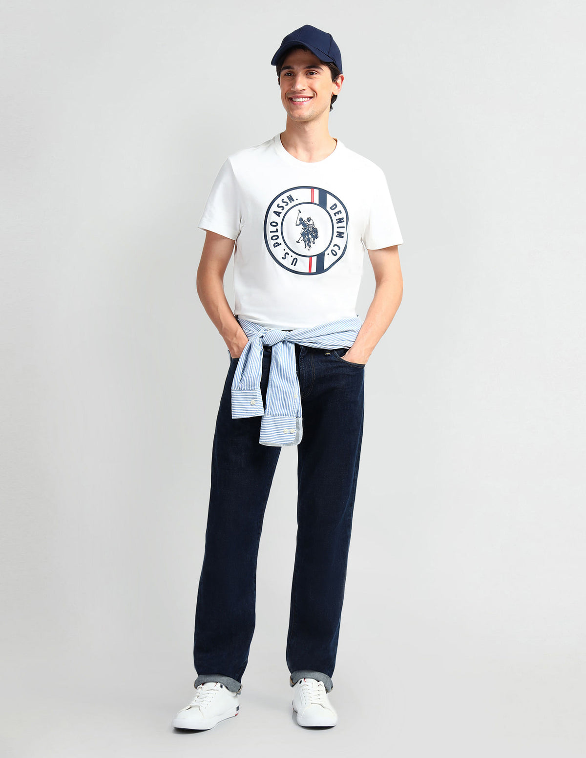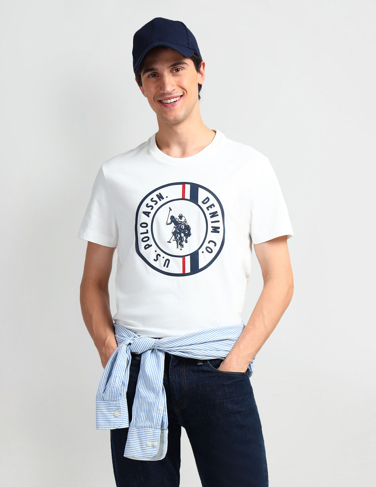 | Ribbed crew neck | Short sleeves | Straight hemline | Brand printed pattern | Knitted | Muscle fit | Country Of Origin - India | AW-24