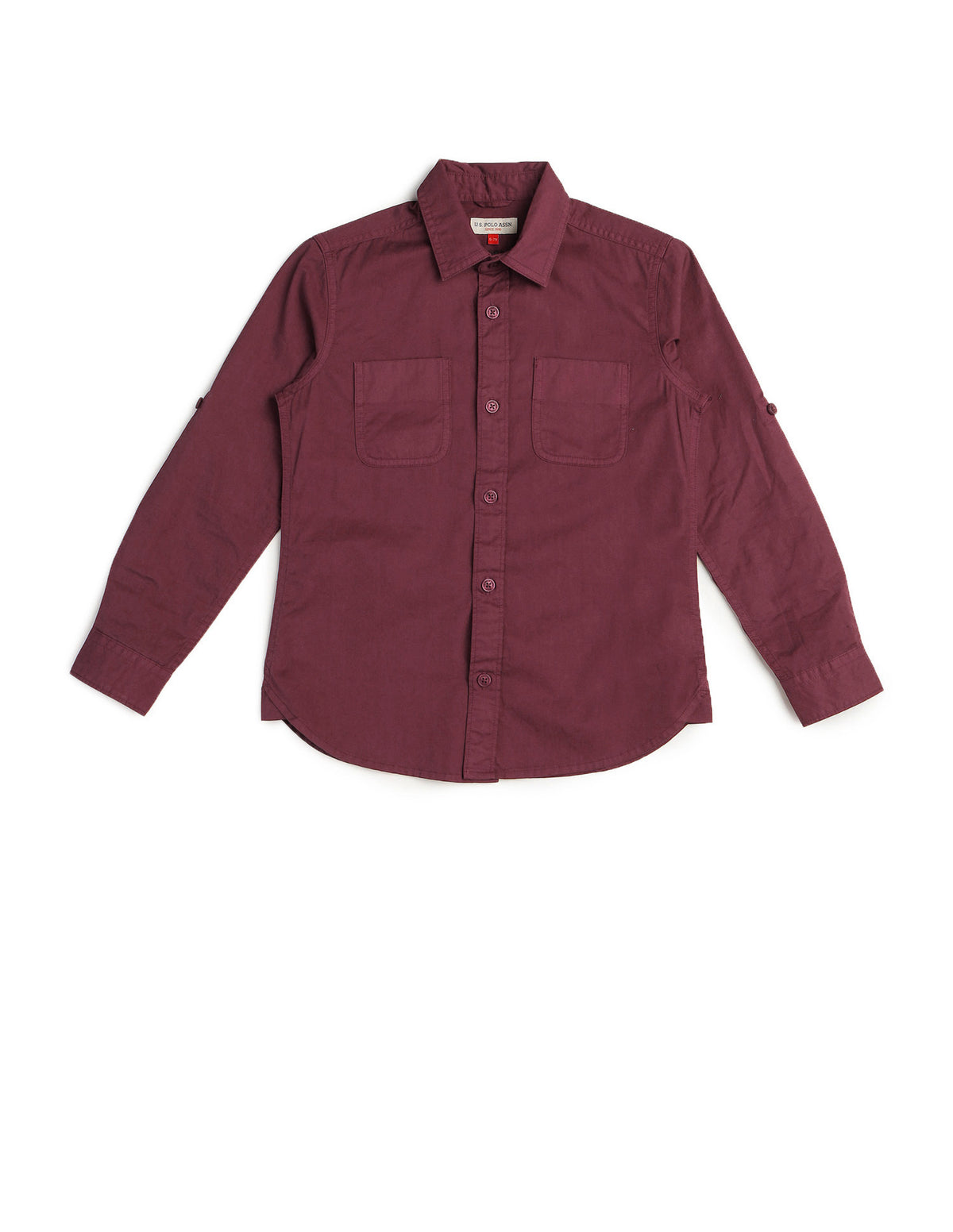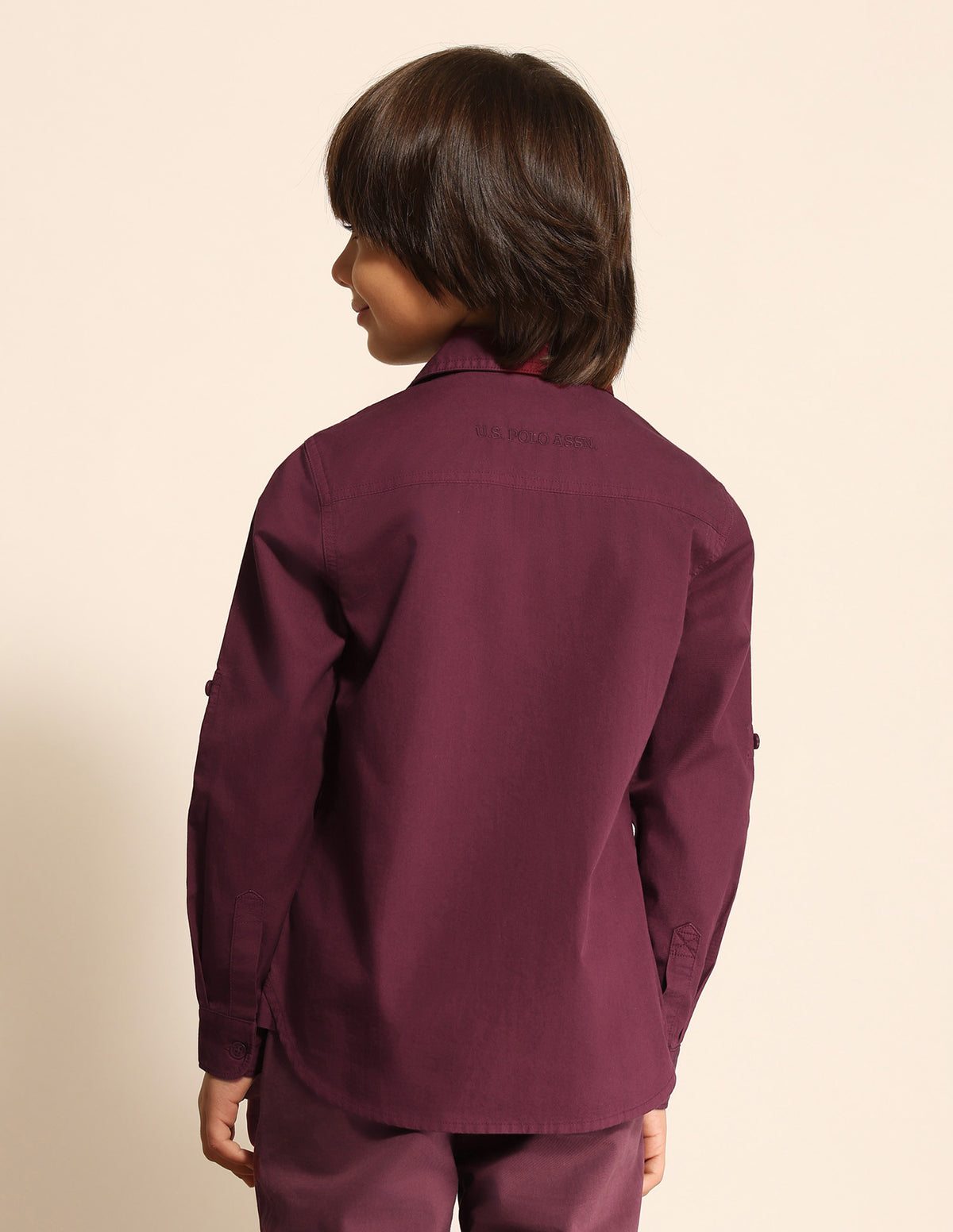 Story: This boys' solid shirt is perfect for casual occasions, offering a simple yet stylish look for everyday wear.
