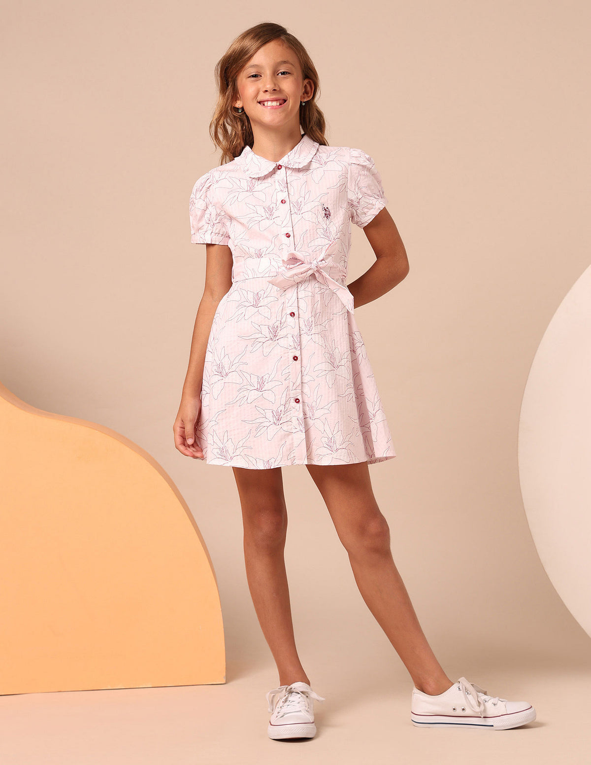 | Peter pan collar | Short button closure | Short sleeve | Floral printed pattern | Regular fit |