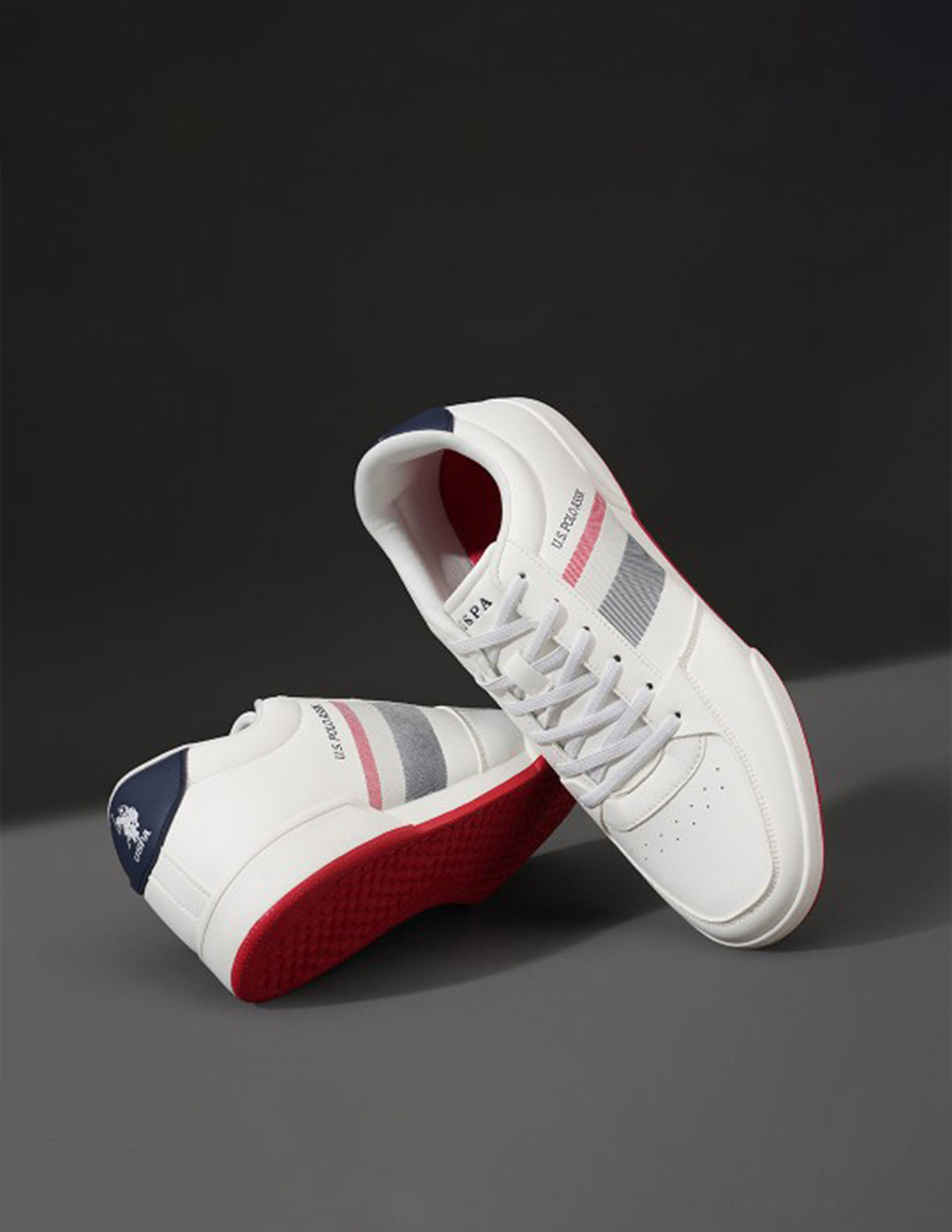 | Round toe | Central lacing | Panelled upper | Padded top line | Reinforced heel counter | Cushioned insole | Textured outsole | Brand striped pattern | Country Of Origin - India