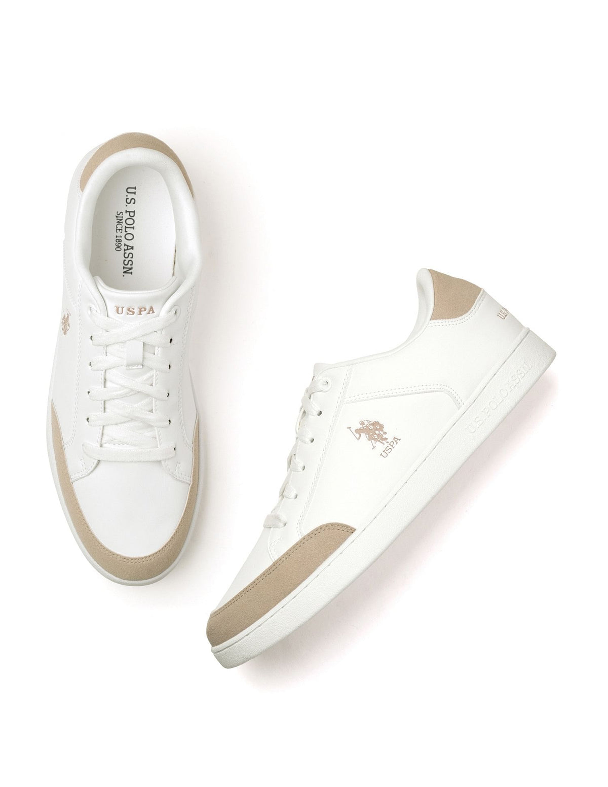 | Round toe | Central lacing | Panelled upper with logo | Padded top line | Reinforced heel counter | Cushioned insole | Textured outsole | Colourblocked pattern |