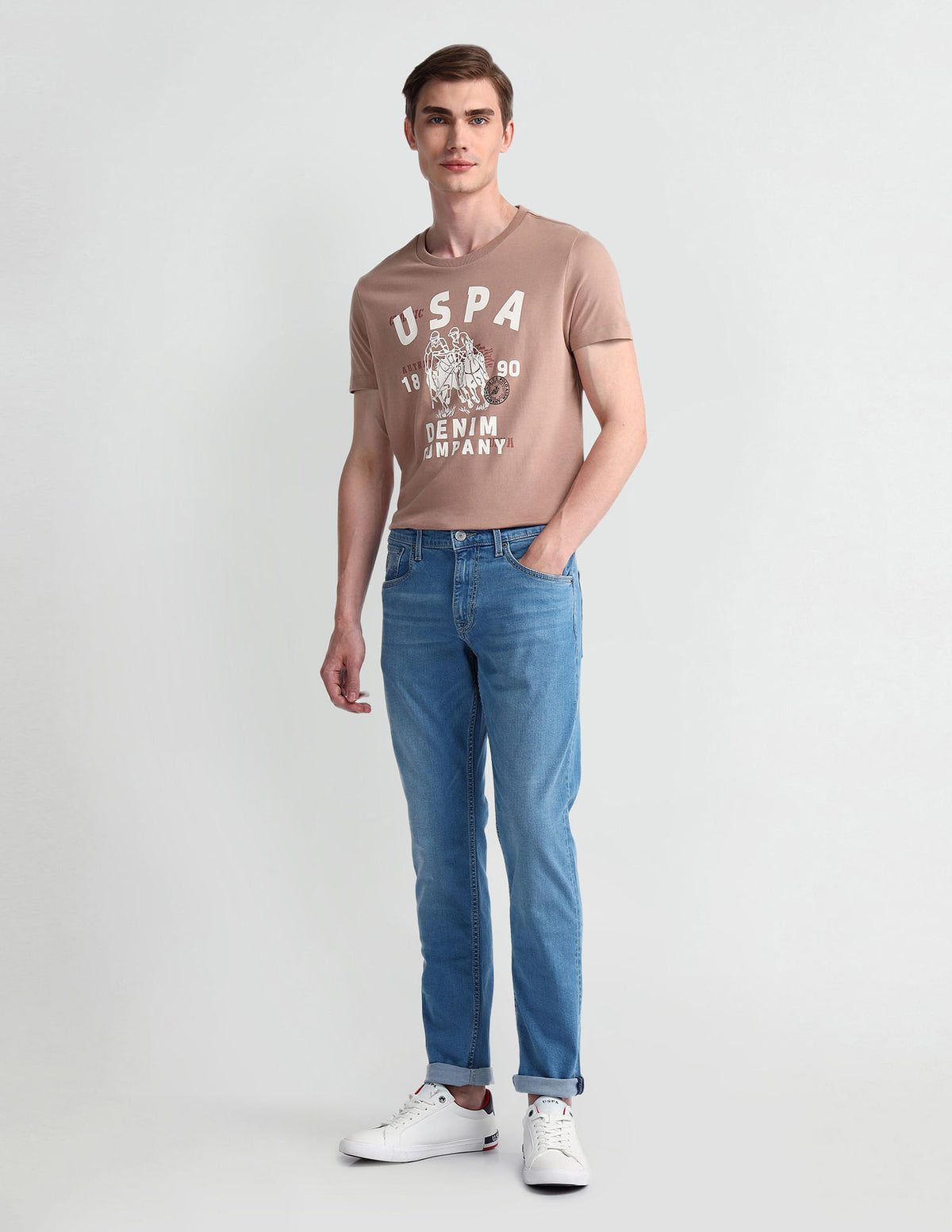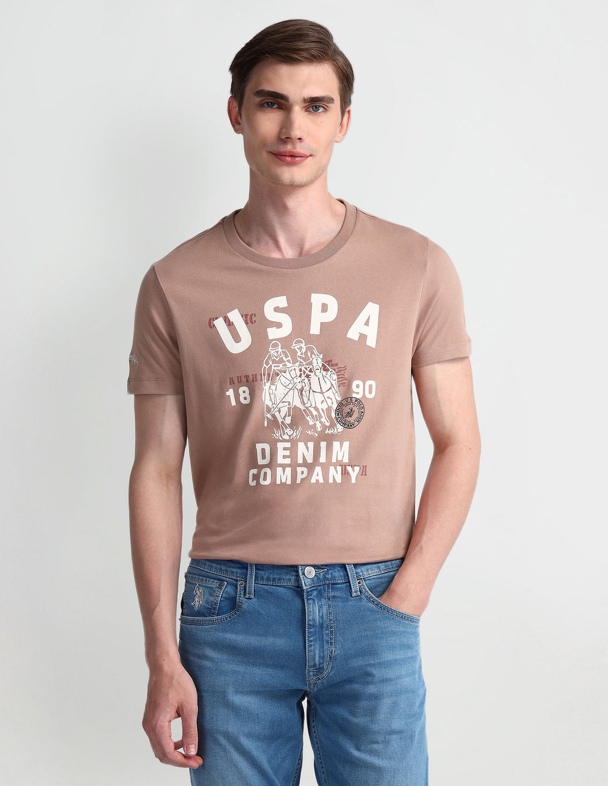 Story: Simple yet stylish, this letter-patterned tee suits any casual occasion seamlessly from the Explorer collection.