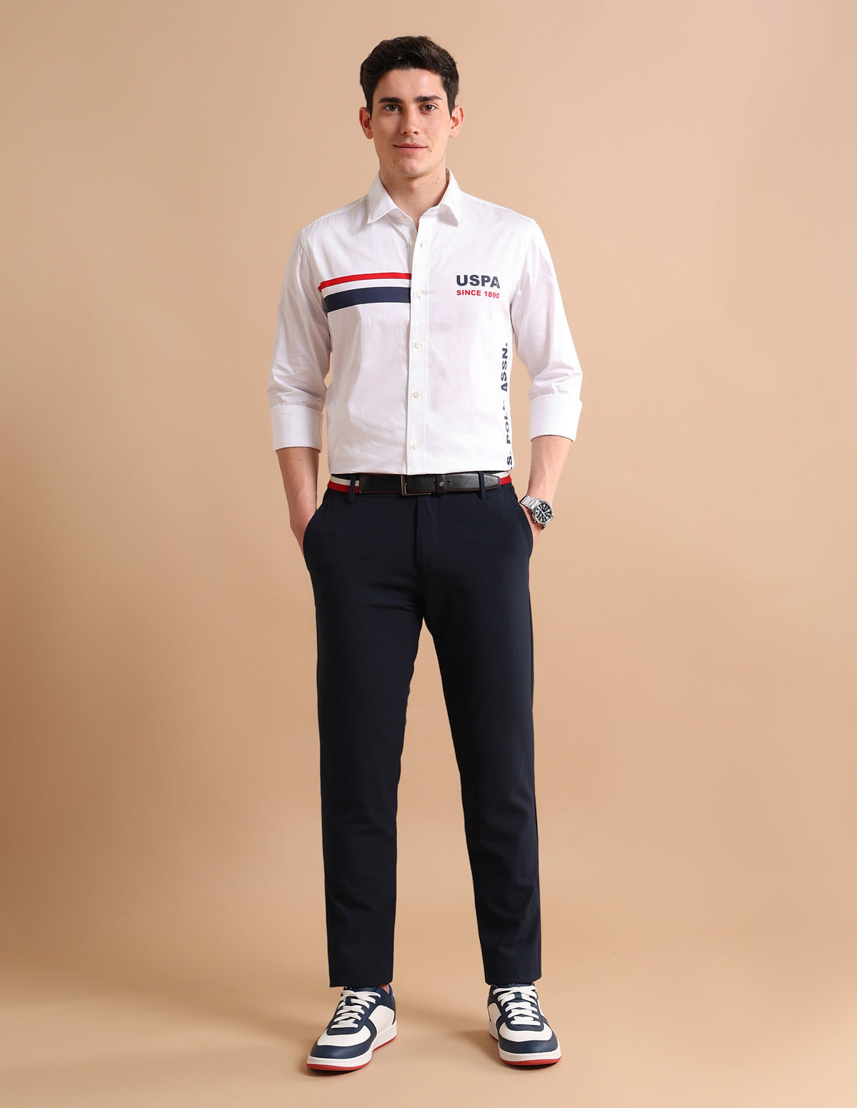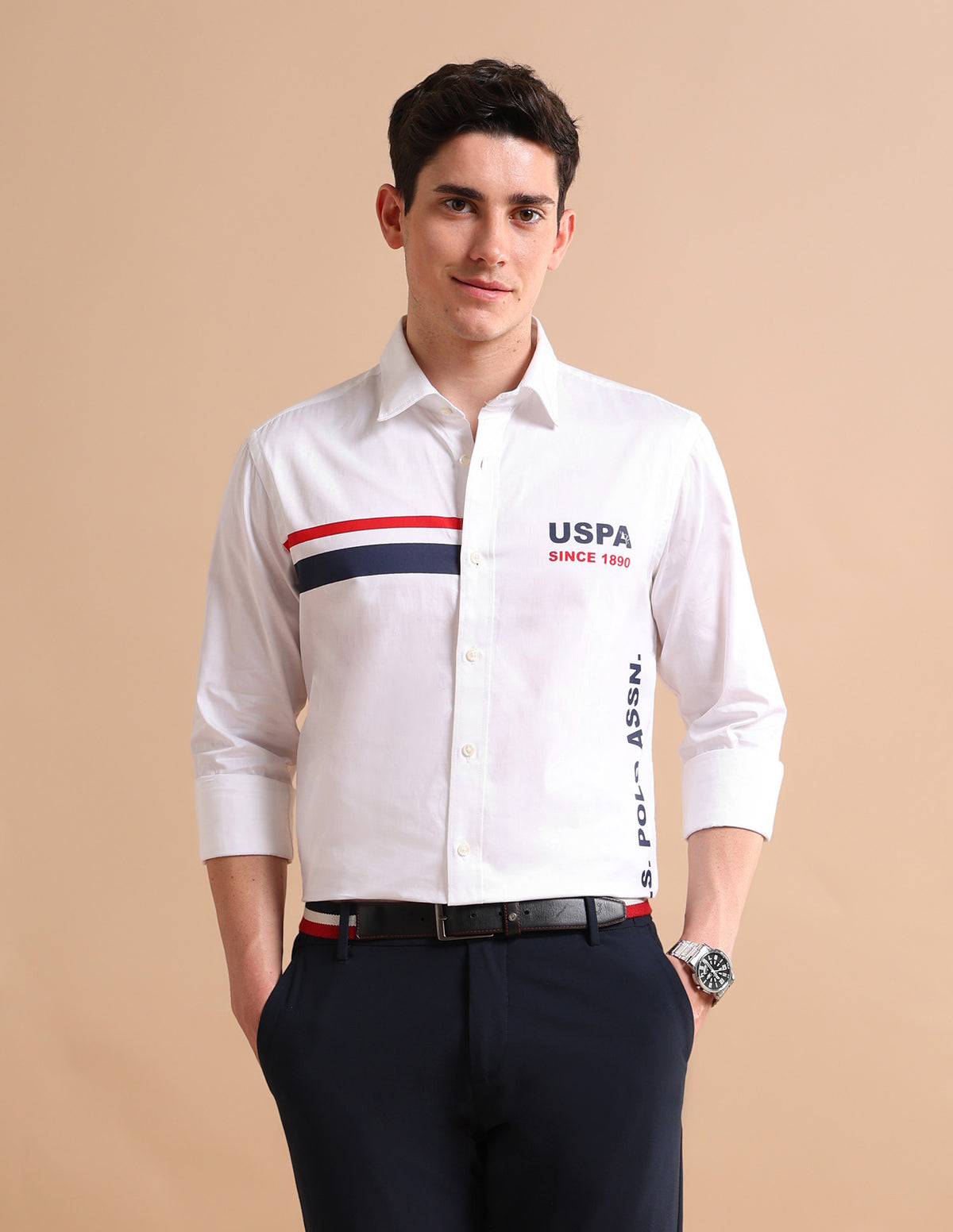 Story: This satin weave shirt features a spread collar and has a placement print that uplifts your look and keeps you comfortable and cool all day.