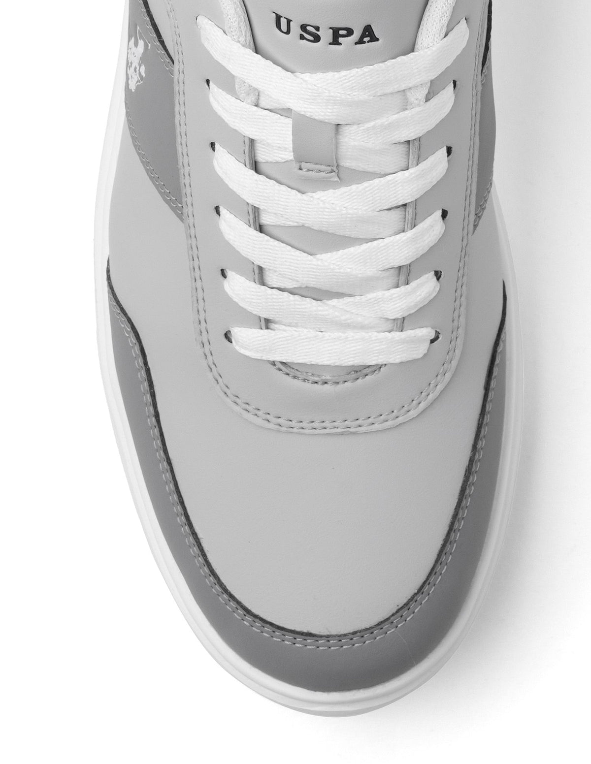 | Round toe | Central lacing | Panelled upper with logo | Padded top line | Reinforced heel counter | Cushioned insole | Textured outsole | Colourblocked pattern |