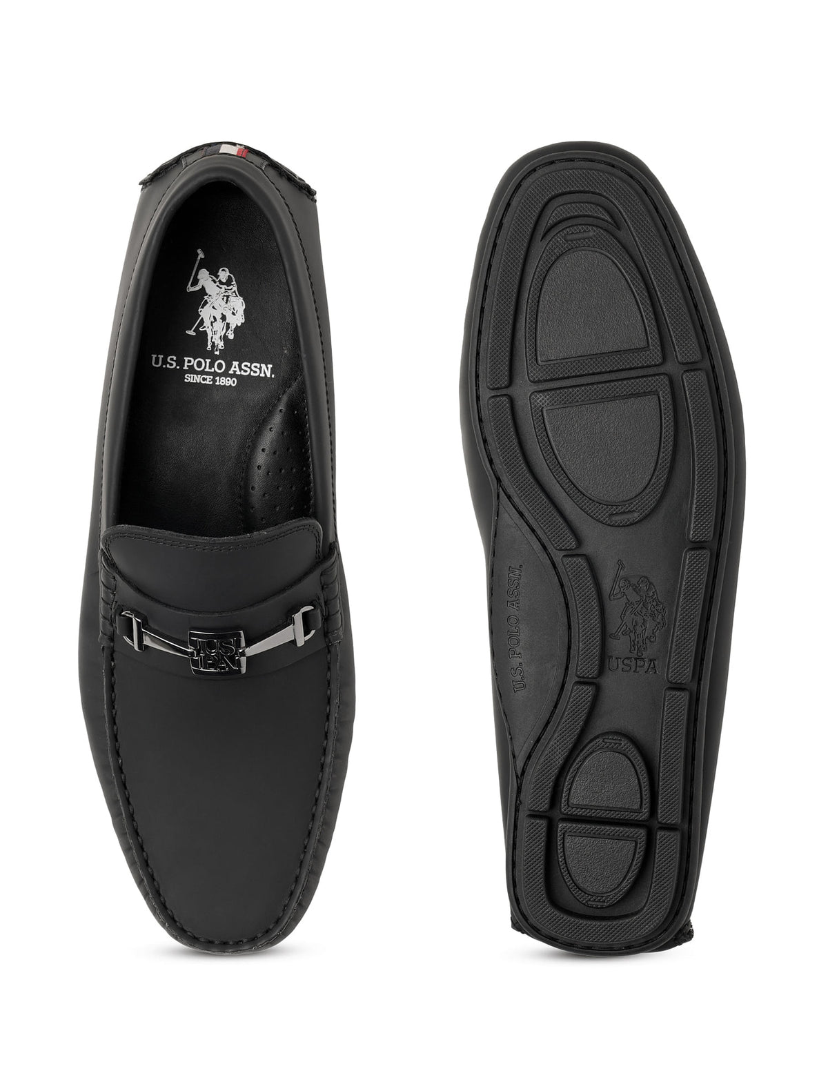 | Round toe | Panelled upper with metallic logo accent | Reinforced heel counter | Cushioned footbed | Textured outsole | Solid pattern |