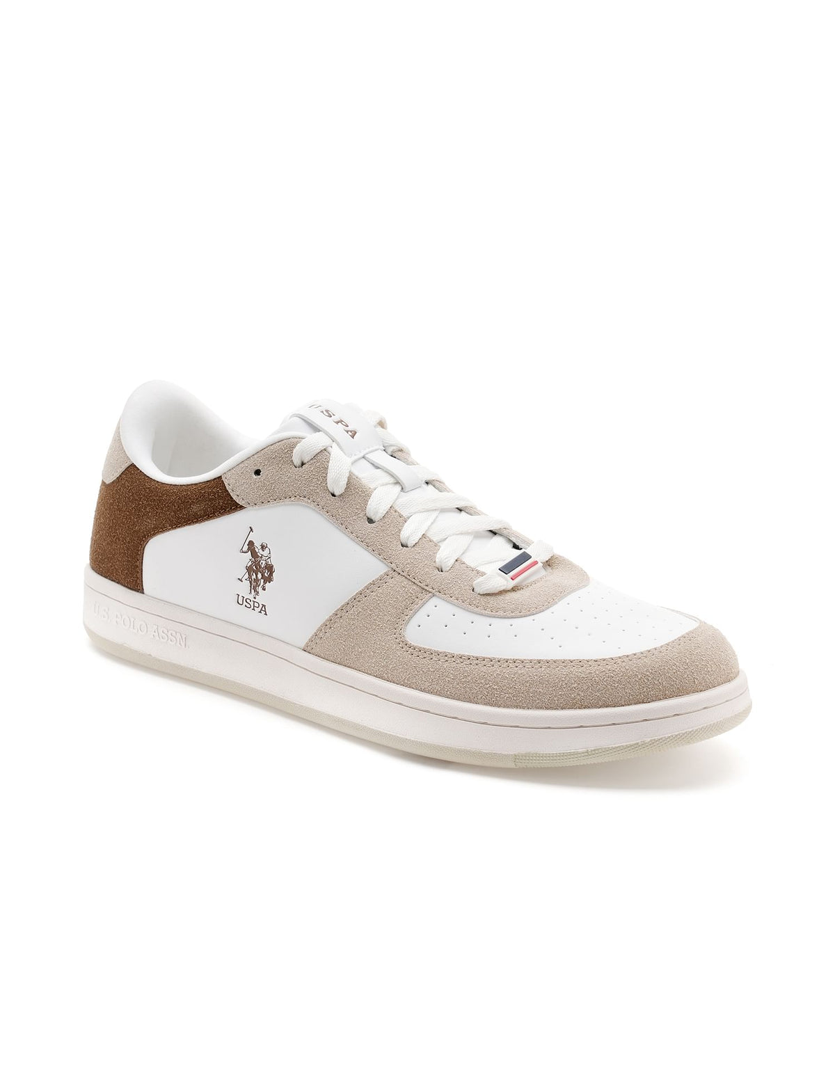 | Round toe | Central lacing | Panelled upper with logo | Padded top line | Contrast reinforced heel counter with logo | Cushioned footbed | Contrast textured outsole | Colourblocked pattern |