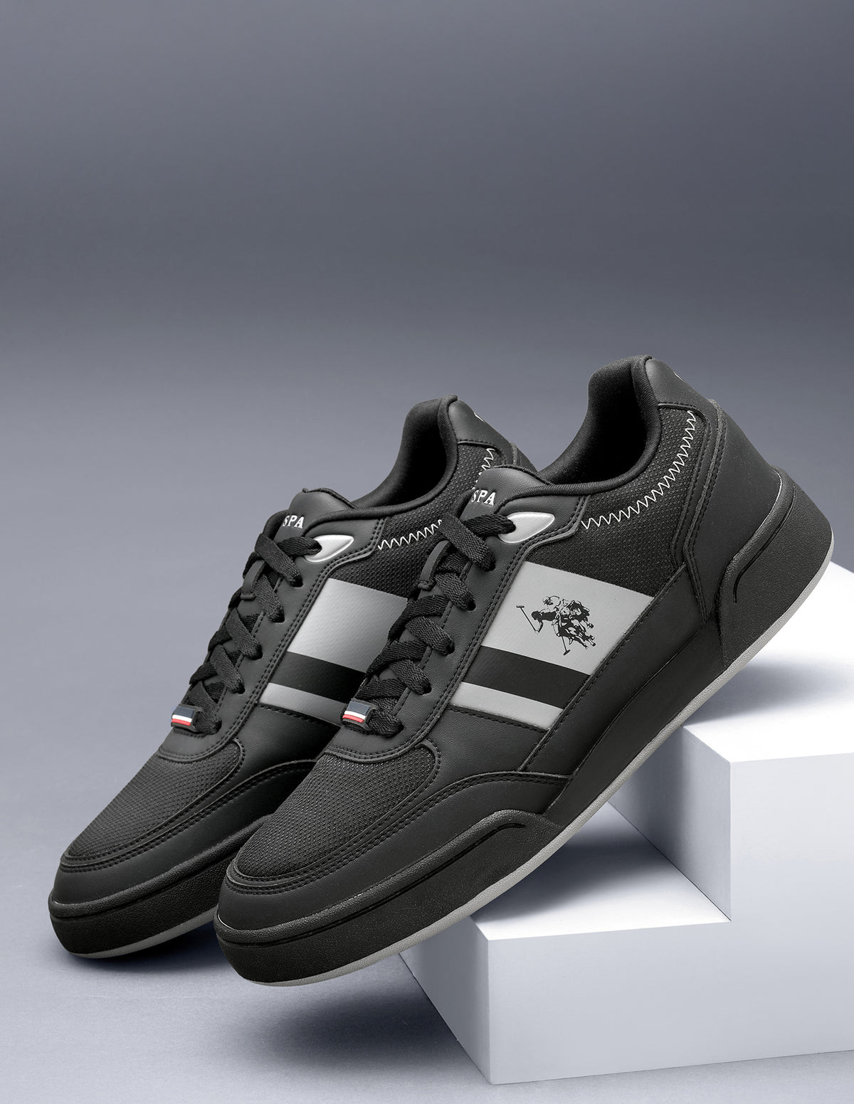 | Round toe | Central lacing | Panelled upper with logo | Padded top line | Contrast reinforced heel counter with logo | Cushioned footbed | Contrast textured outsole | Colourblocked pattern |