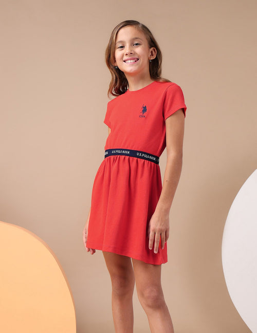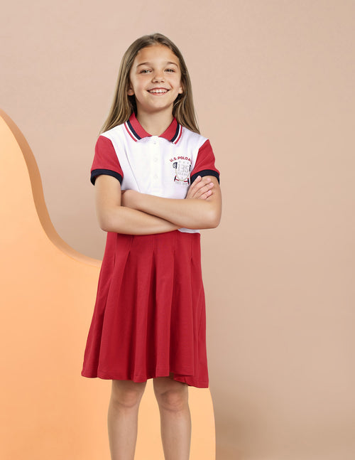 Girls Solid Fit And Flare Polo Dress