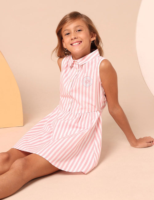 Girls Vertical Stripe Cotton Dress