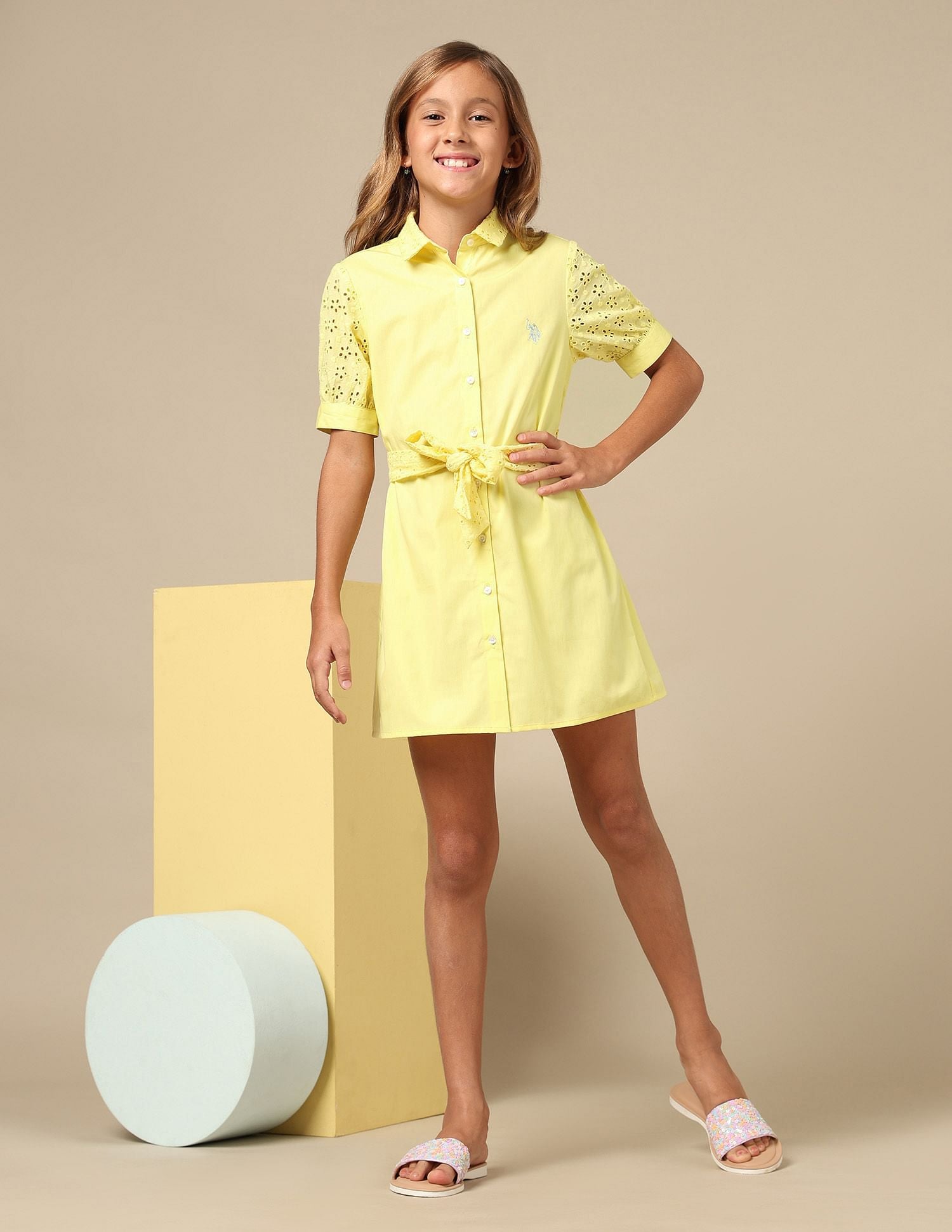 Girls Polo Collar Cotton Dress