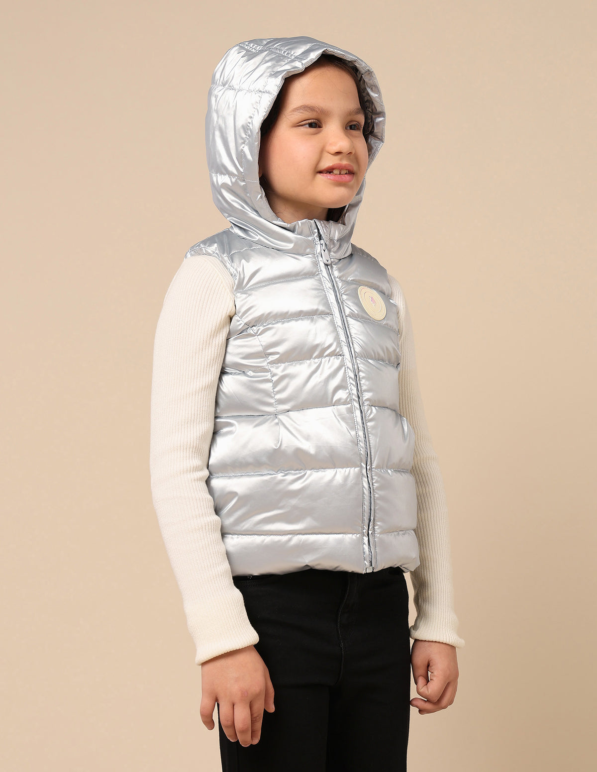 | Hooded | Full zipper closure | Sleeveless | Two pockets | Quilted construction | Solid pattern |