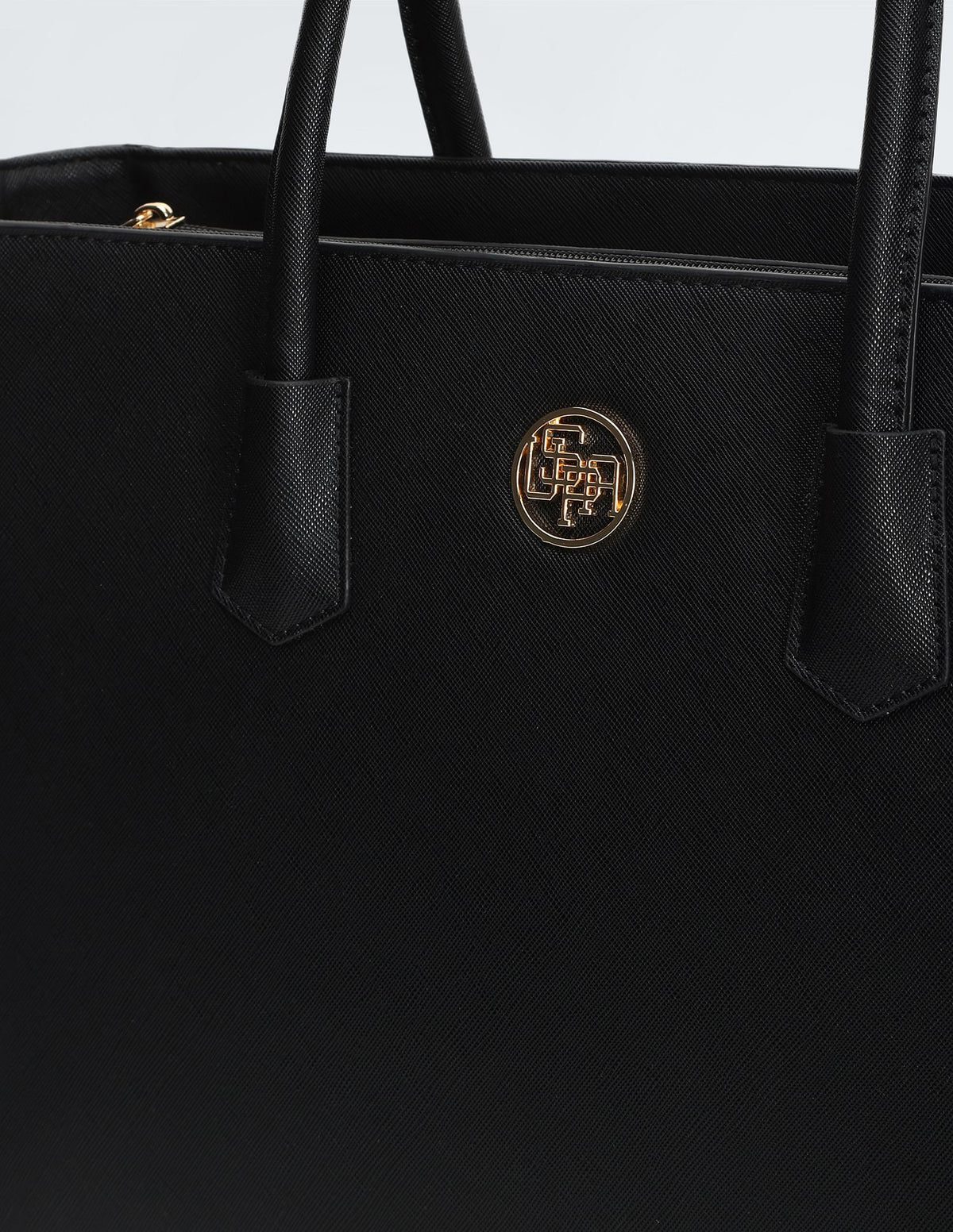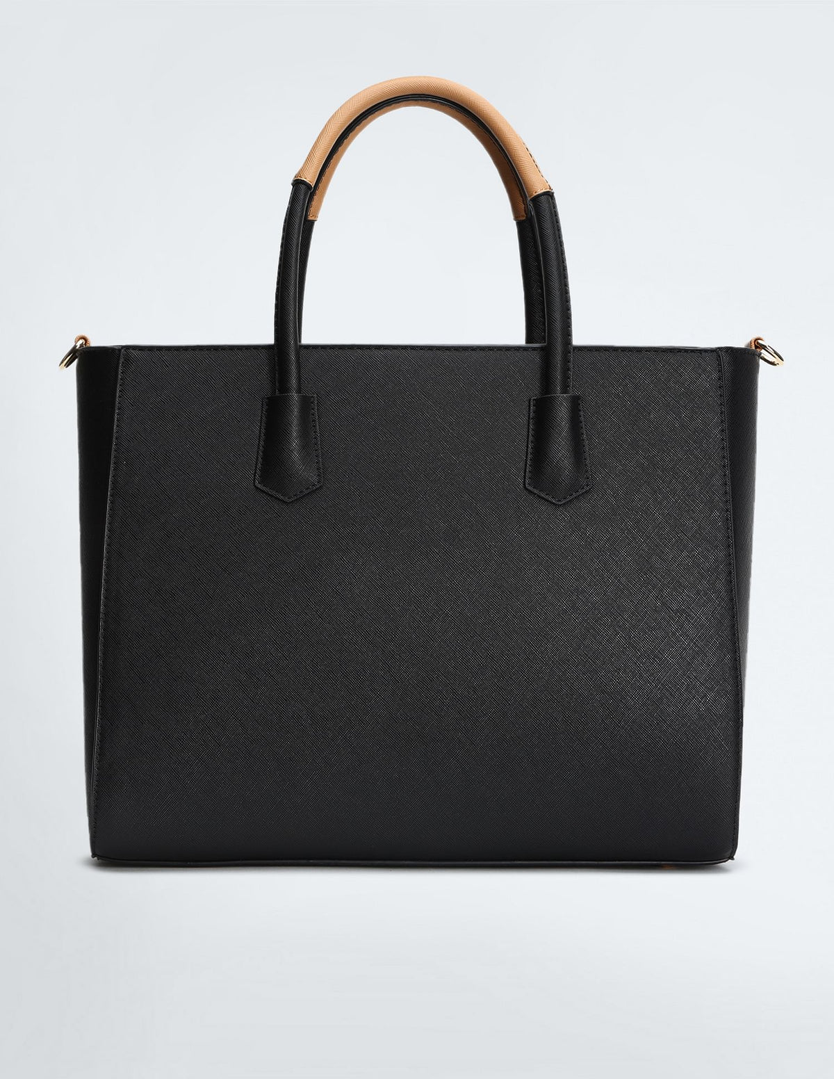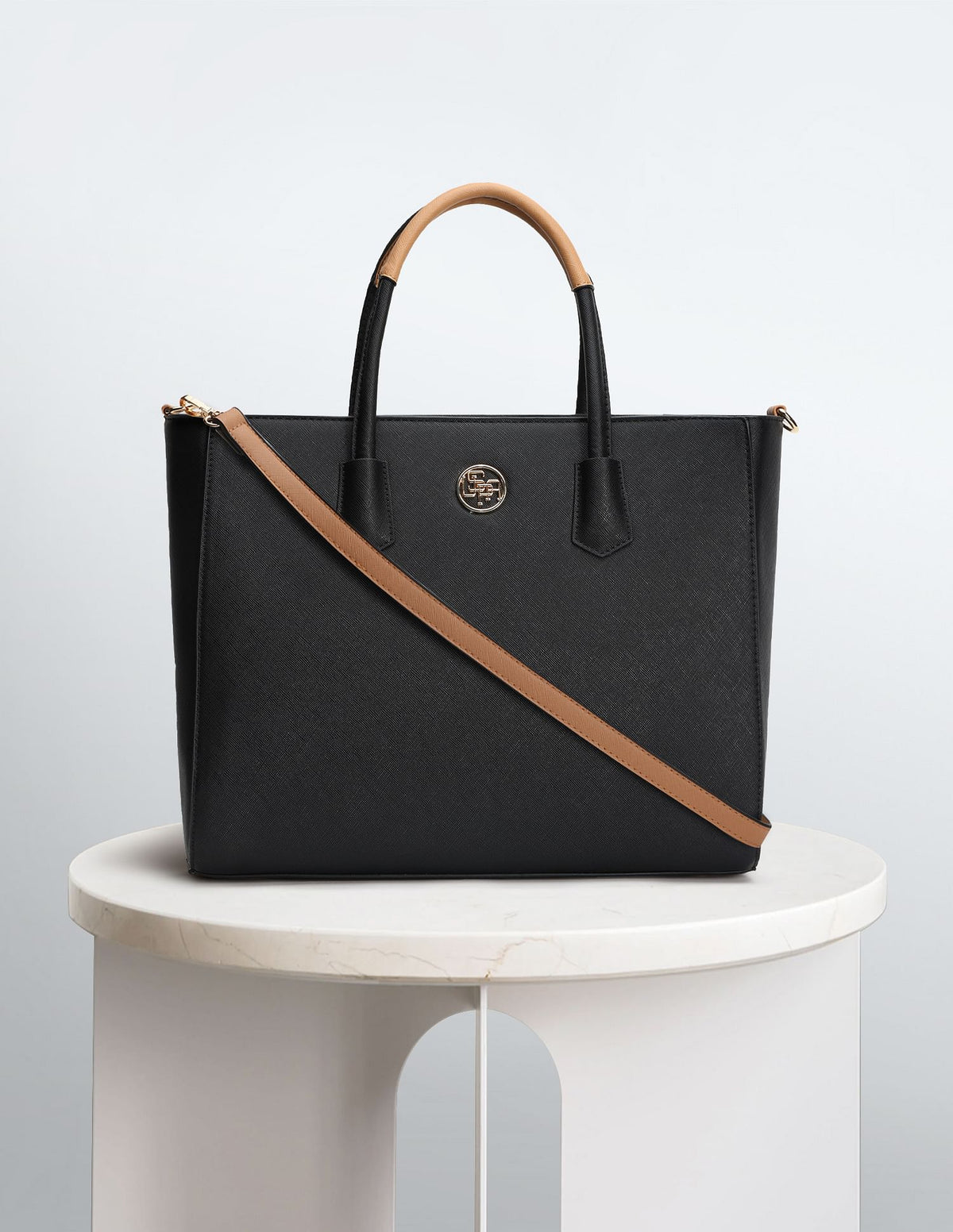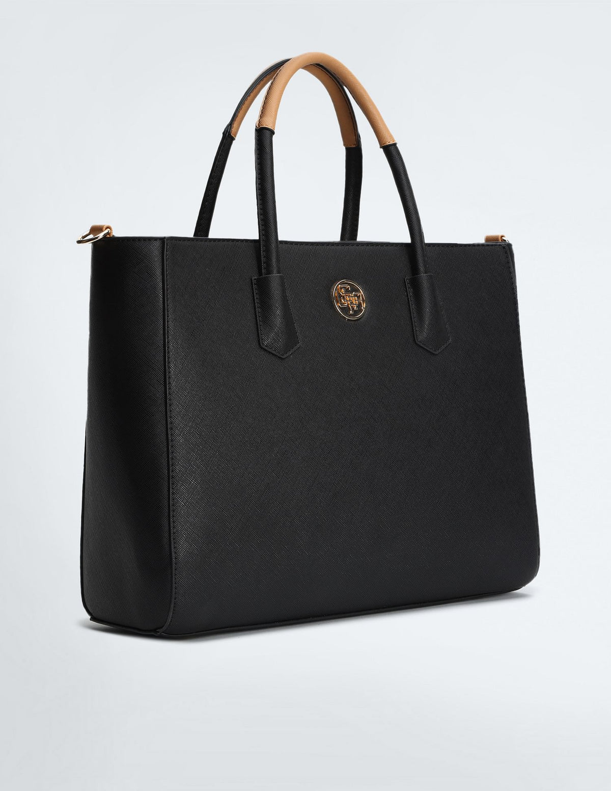 Story: Add a statement edge to your accessories with this spacious hand-held bag from the City Girl collection featuring contrasting detachable straps and polished gold-tone hardware.