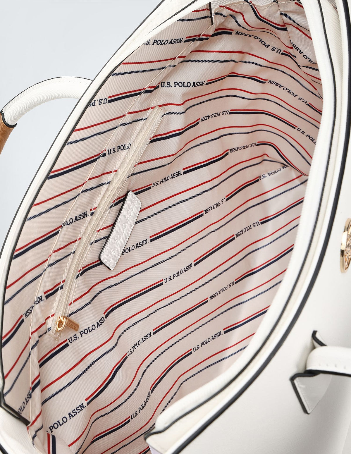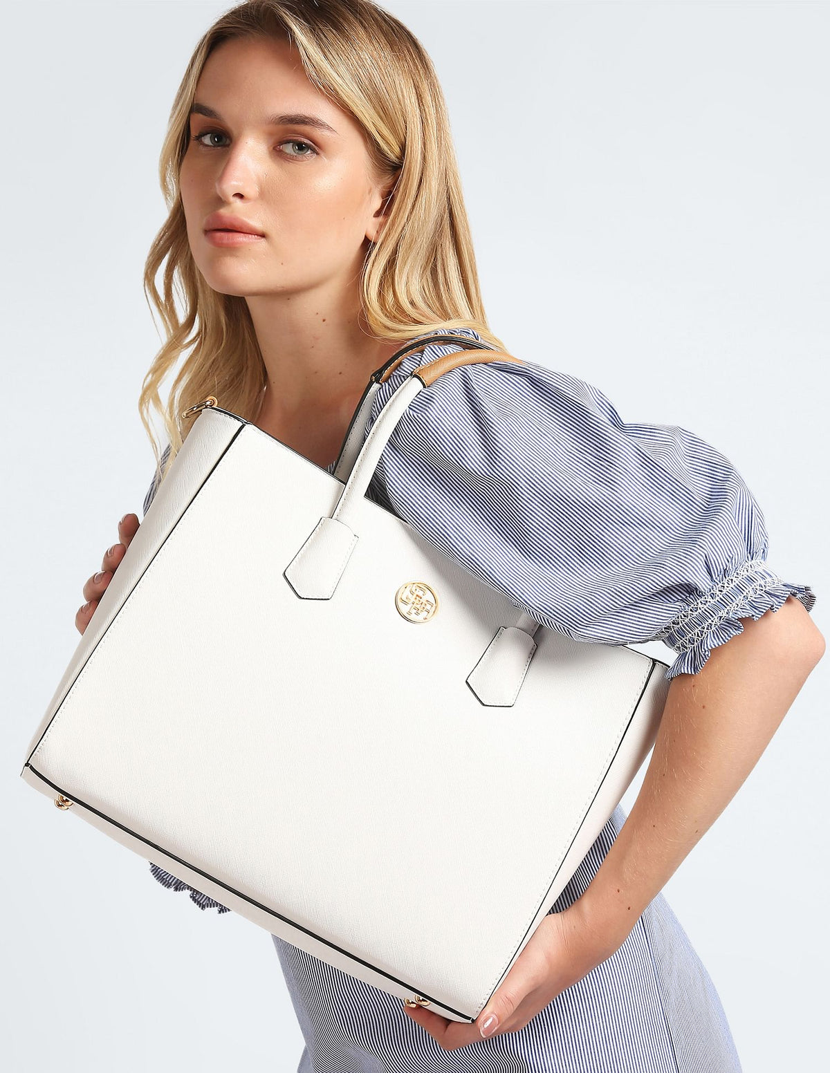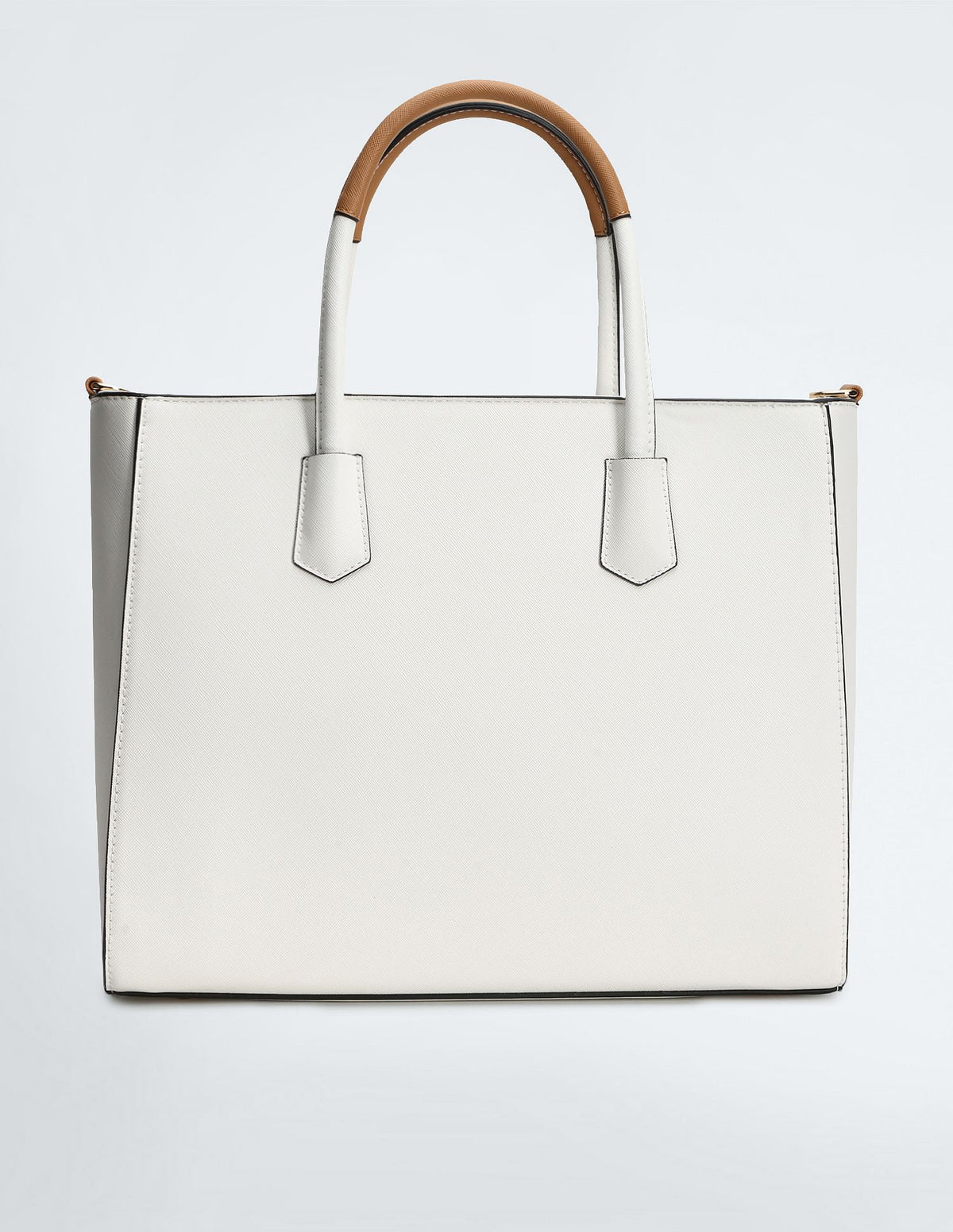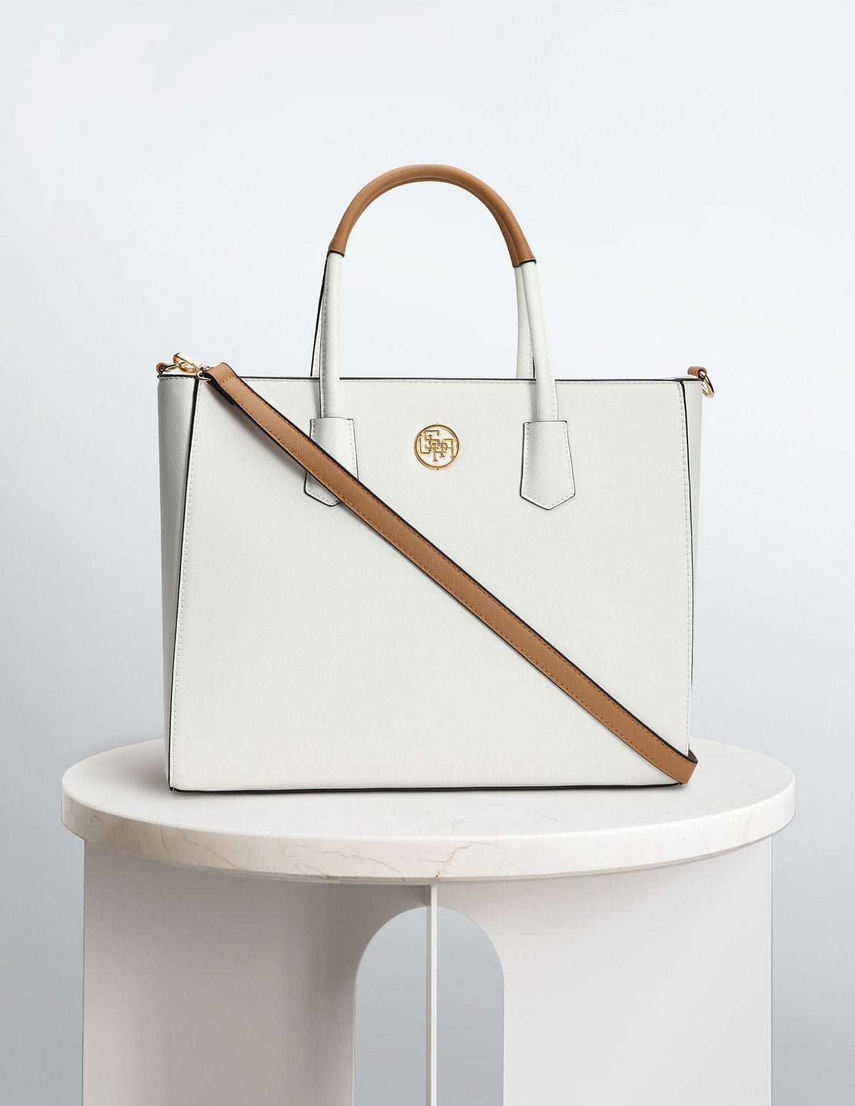 Story: Add a statement edge to your accessories with this spacious hand-held bag from the City Girl collection featuring contrasting detachable straps and polished gold-tone hardware.