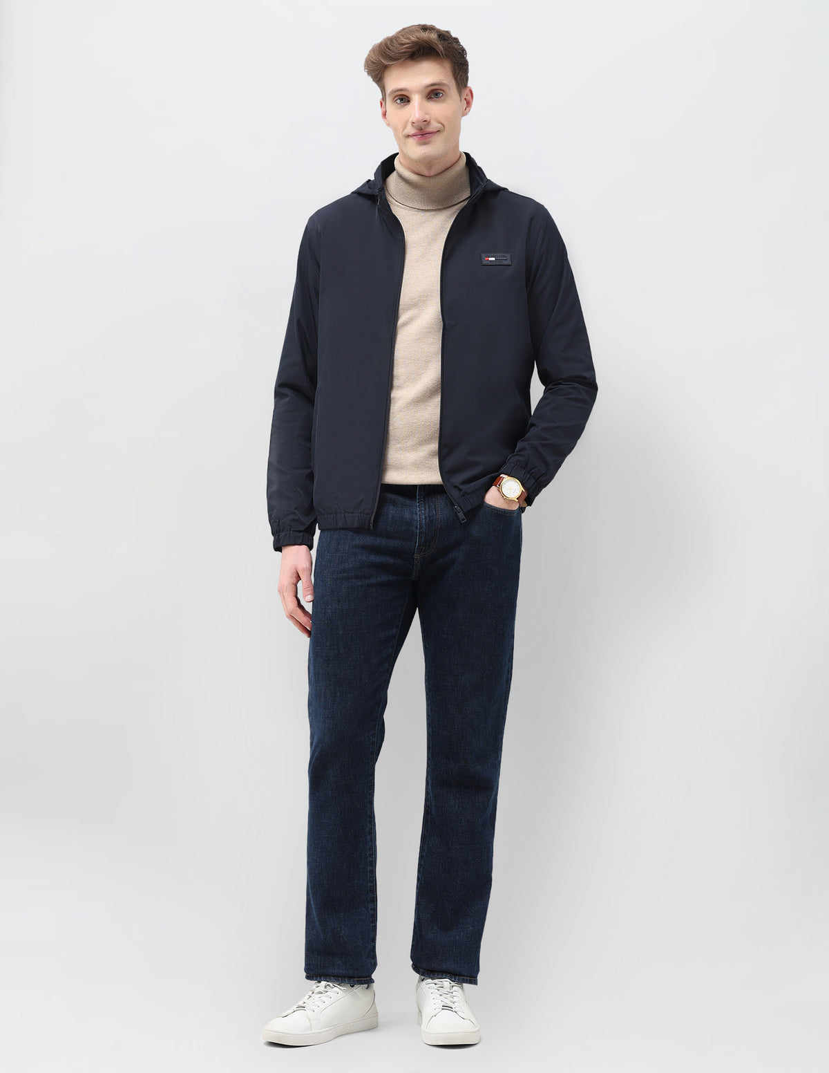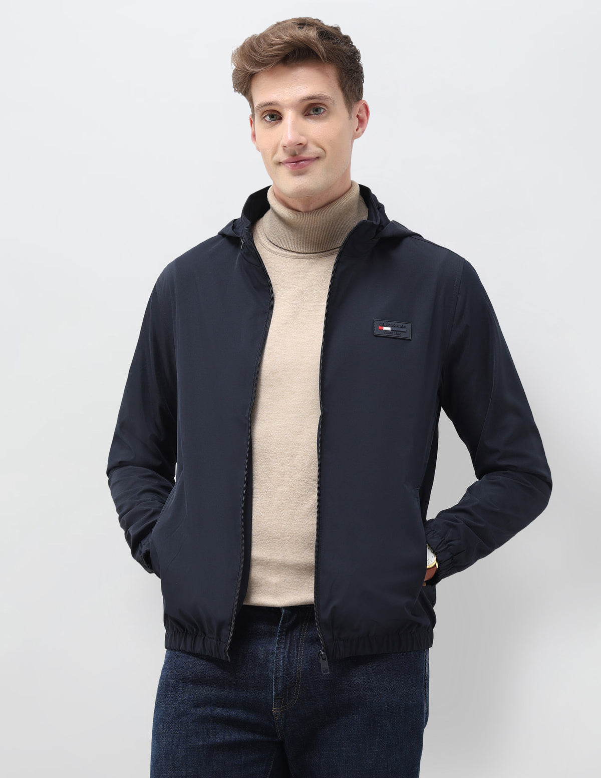 Regular Fit Solid Packable Hood Jacket