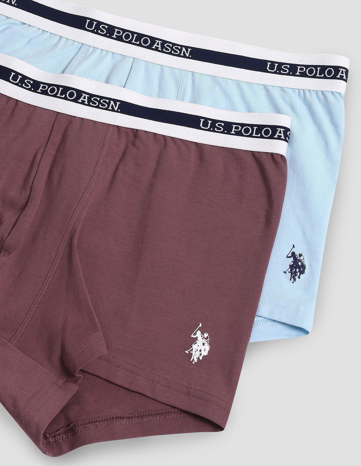 | Pack of 2: | Mid-rise sits comfortably at your waist | Soft stretch elasticised waistband with branding | Double-layered pouch provides enhanced support | Full front and rear coverage | Elastane ribbed with logo at hem | Solid pattern | Country Of Origin - India