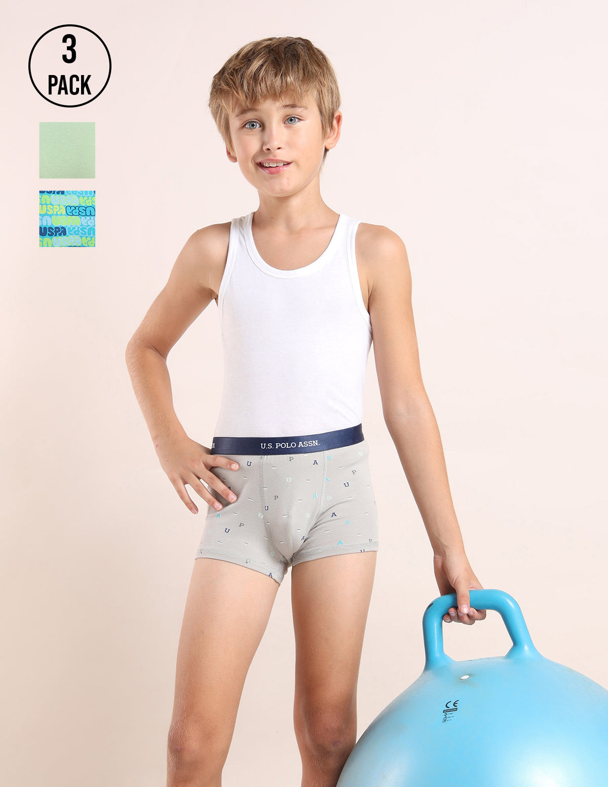 Boys Mid Rise Cotton Spandex Trunks - Pack Of 3